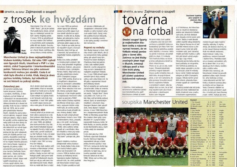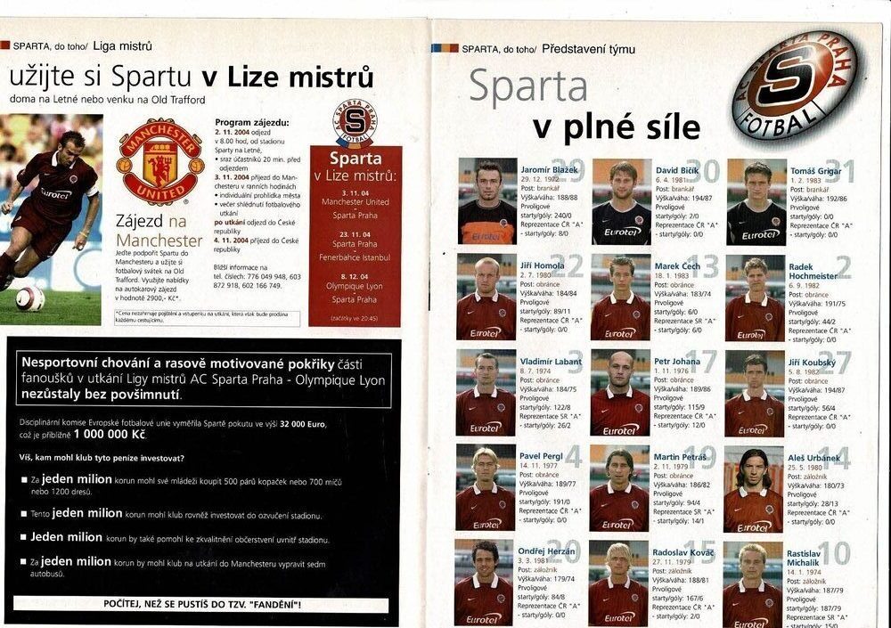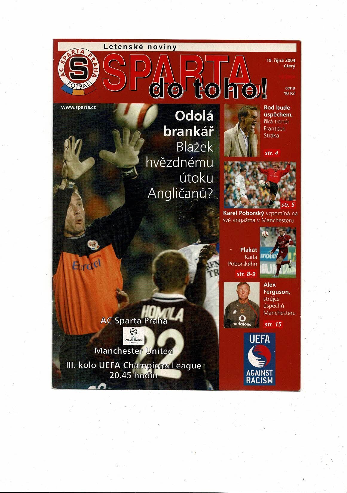 FC Sparta Prague v Manchester United Champions League Football Newspaper 2004/05