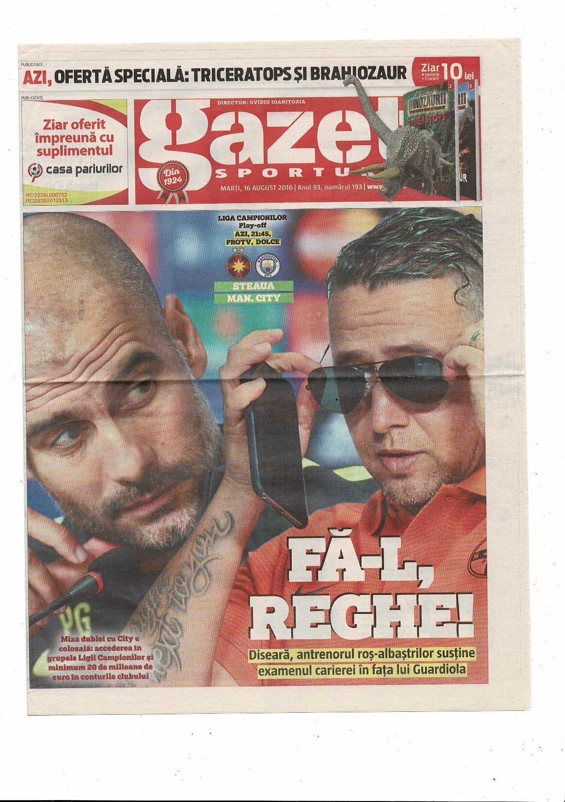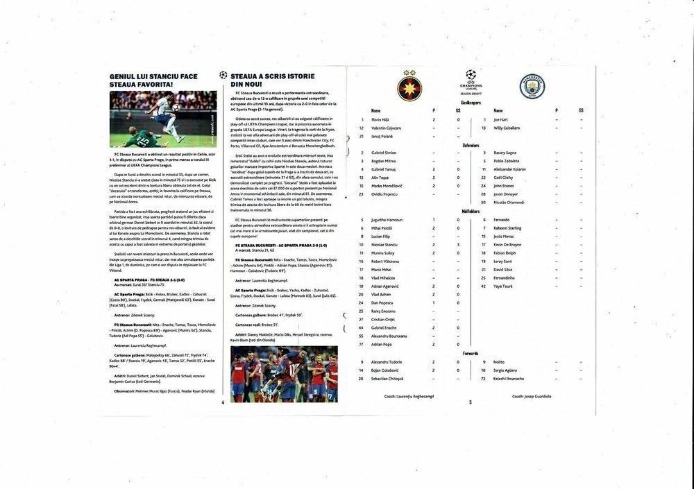 FC Steaua Bucharesti v Manchester City Champions League Match Guide & Gazeta Sportur Newspaper Supplement 2016/17