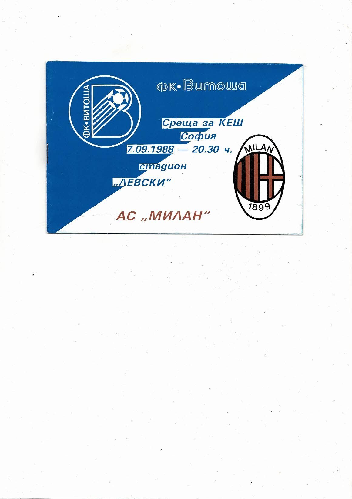 FC Vitosha v AC Milan European Cup Football Programme 1988/89