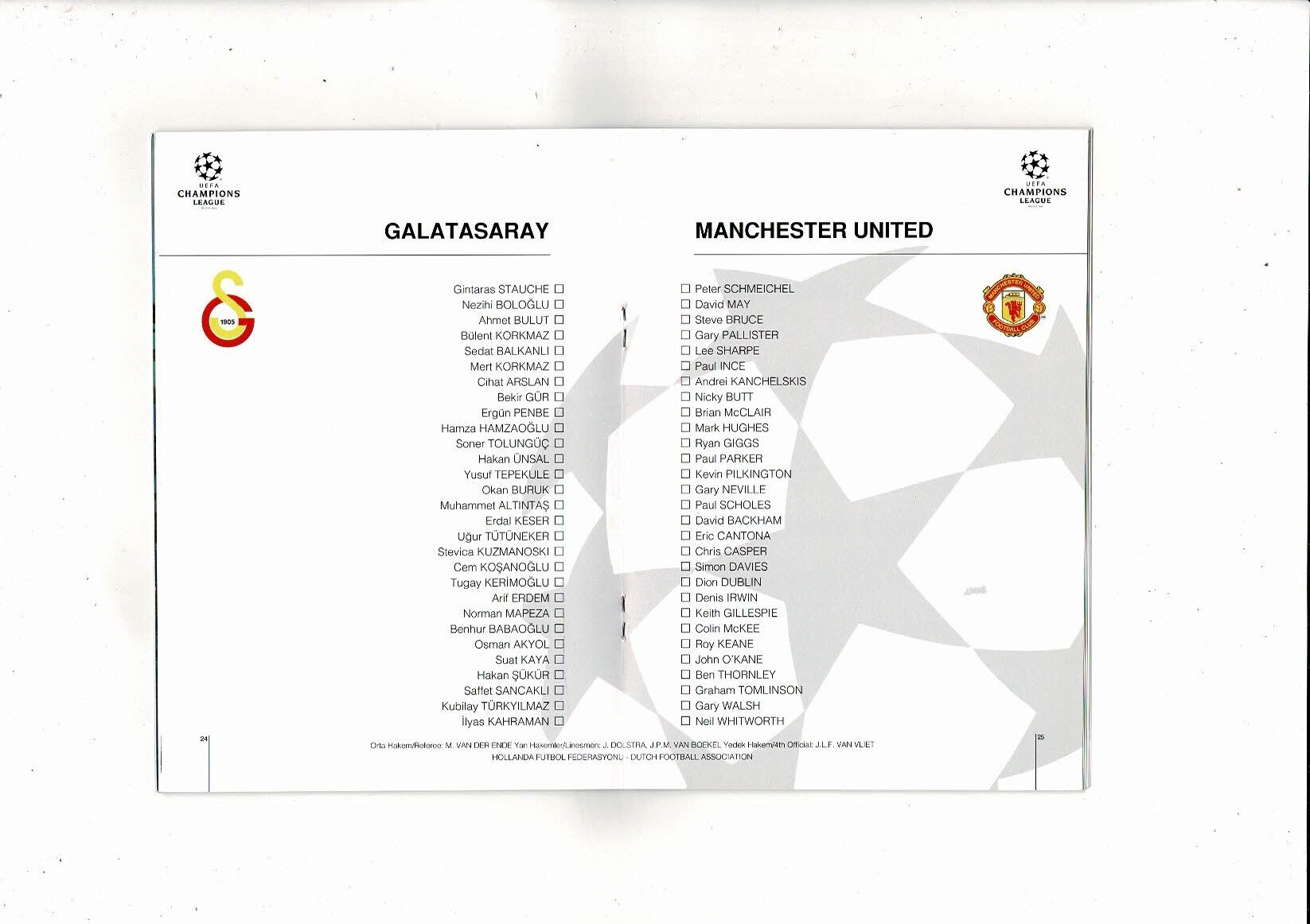 Galatasaray v Manchester United Champions League Football Programme 1993/94