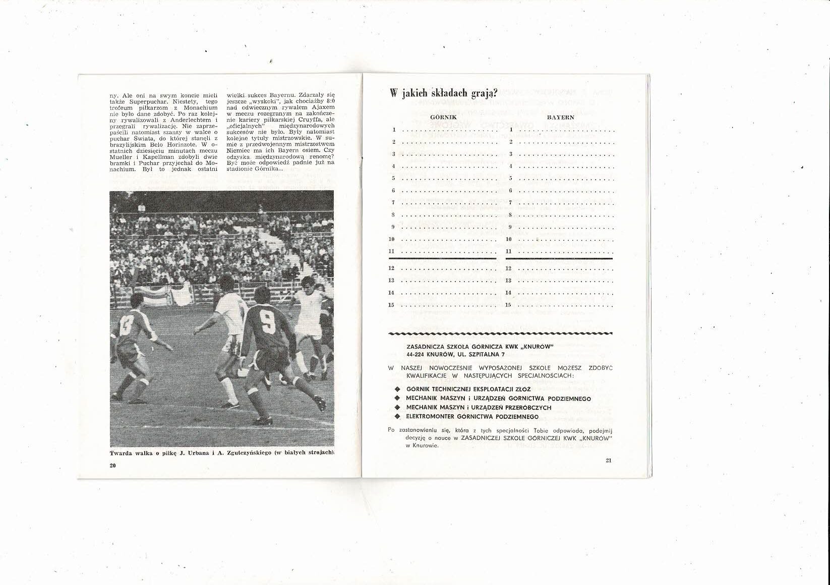 Gornik Zabrze v Bayern Munich European Cup Football Programme 1985/86