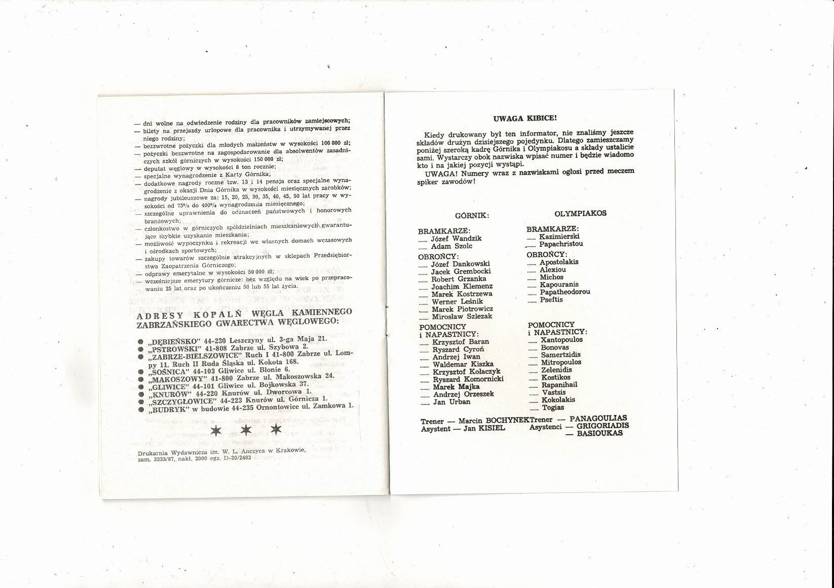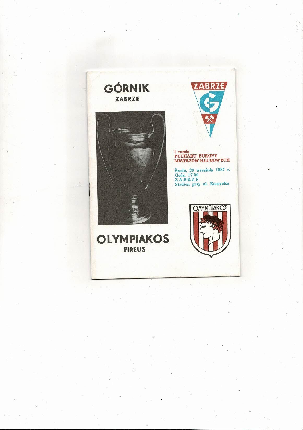 Gornik Zabrze v Olympiakos European Cup Football Programme 1987/88