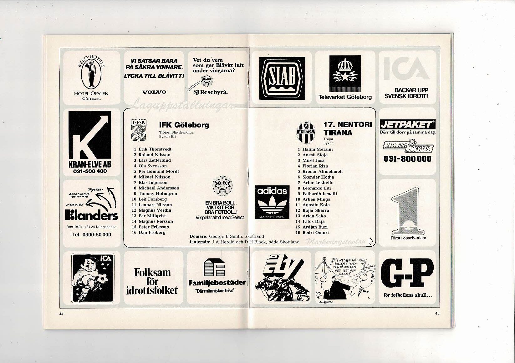 Gothenburg v 17 Nentori Tirana European Cup Football Programme 1988/89