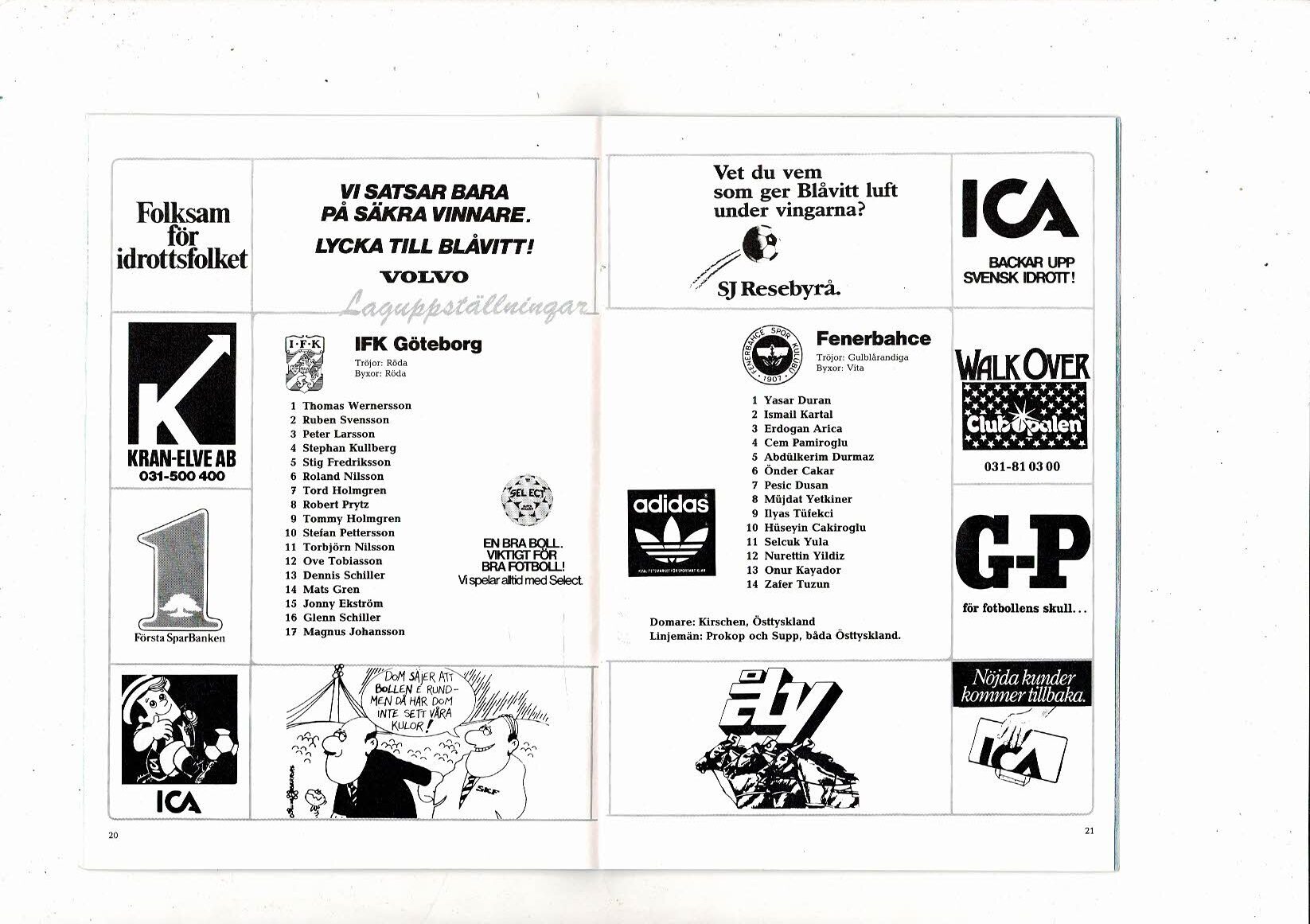 Gothenburg v Fenerbache European Cup Football Programme 1985/86