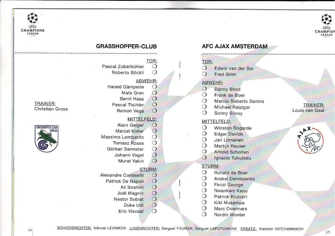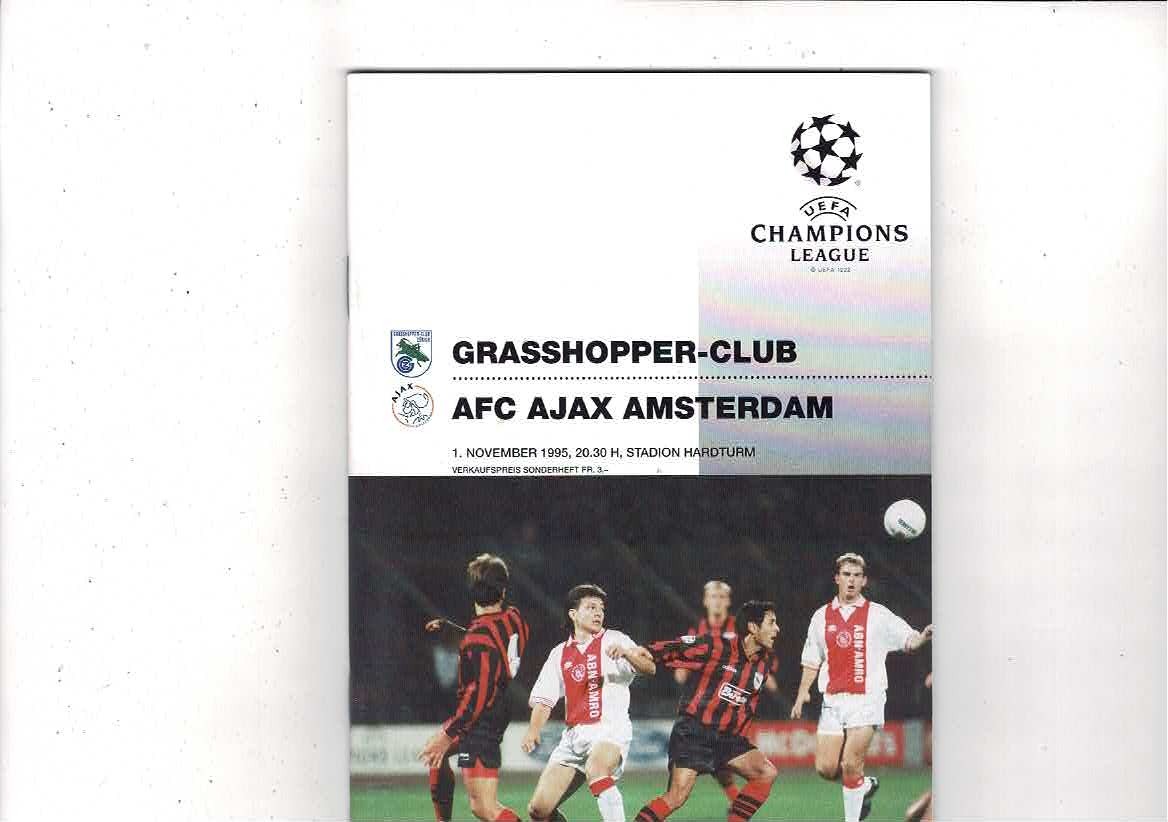 Grasshopper Zurich v Ajax UEFA Champions League Football Programme 1995/96