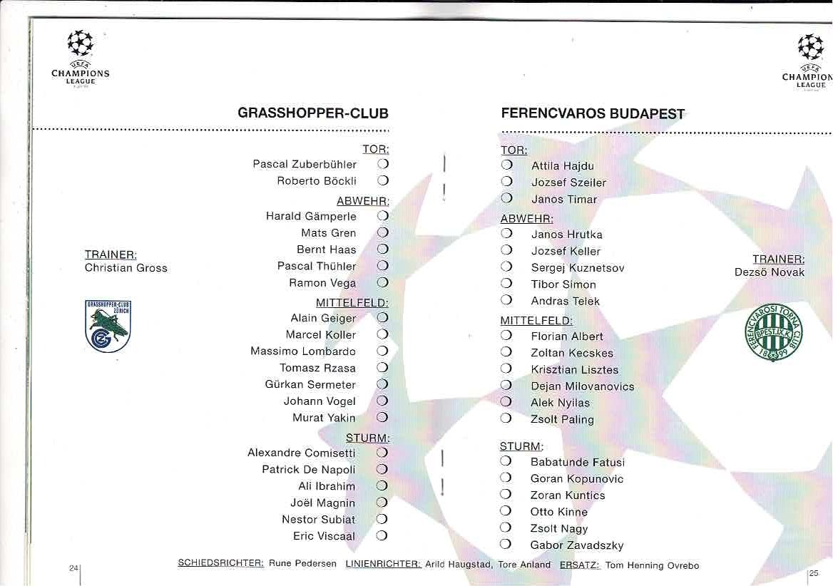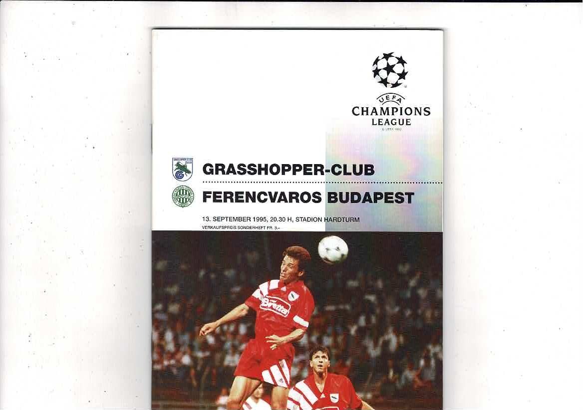 Grasshopper Zurich v Ferencvaros UEFA Champions League Football Programme 1995/96