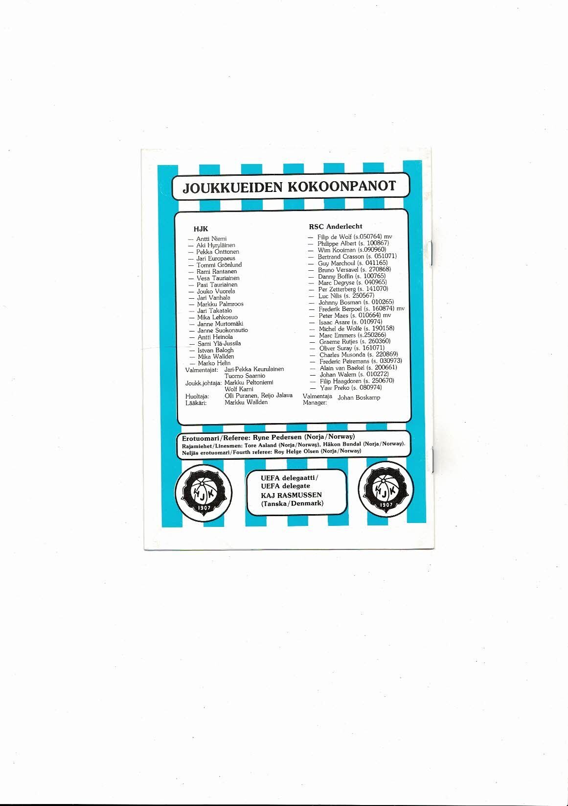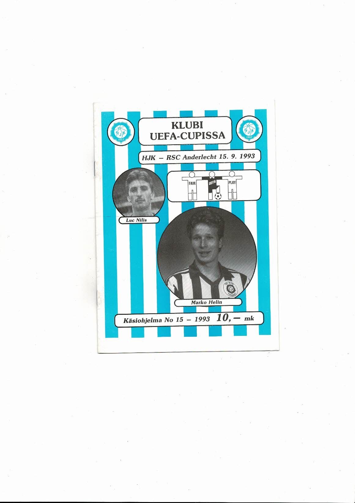 HJK Helsinki v Anderlecht UEFA Champions League Football Programme 1993/94