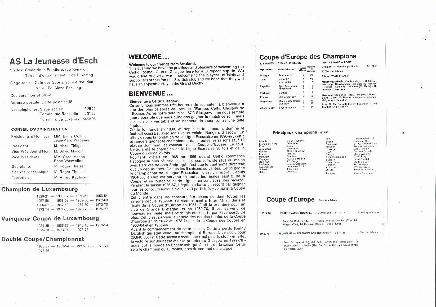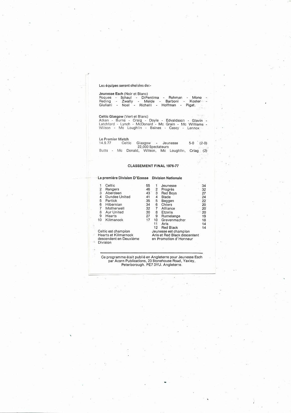 Jeunesse v Celtic European Cup Football Programme 1977/78