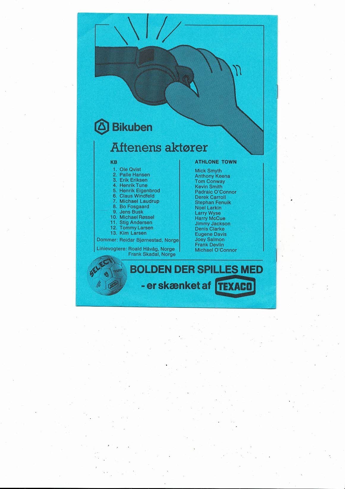 KB Kobenhavn v Athlone Town European Cup Football Programme 1981/82