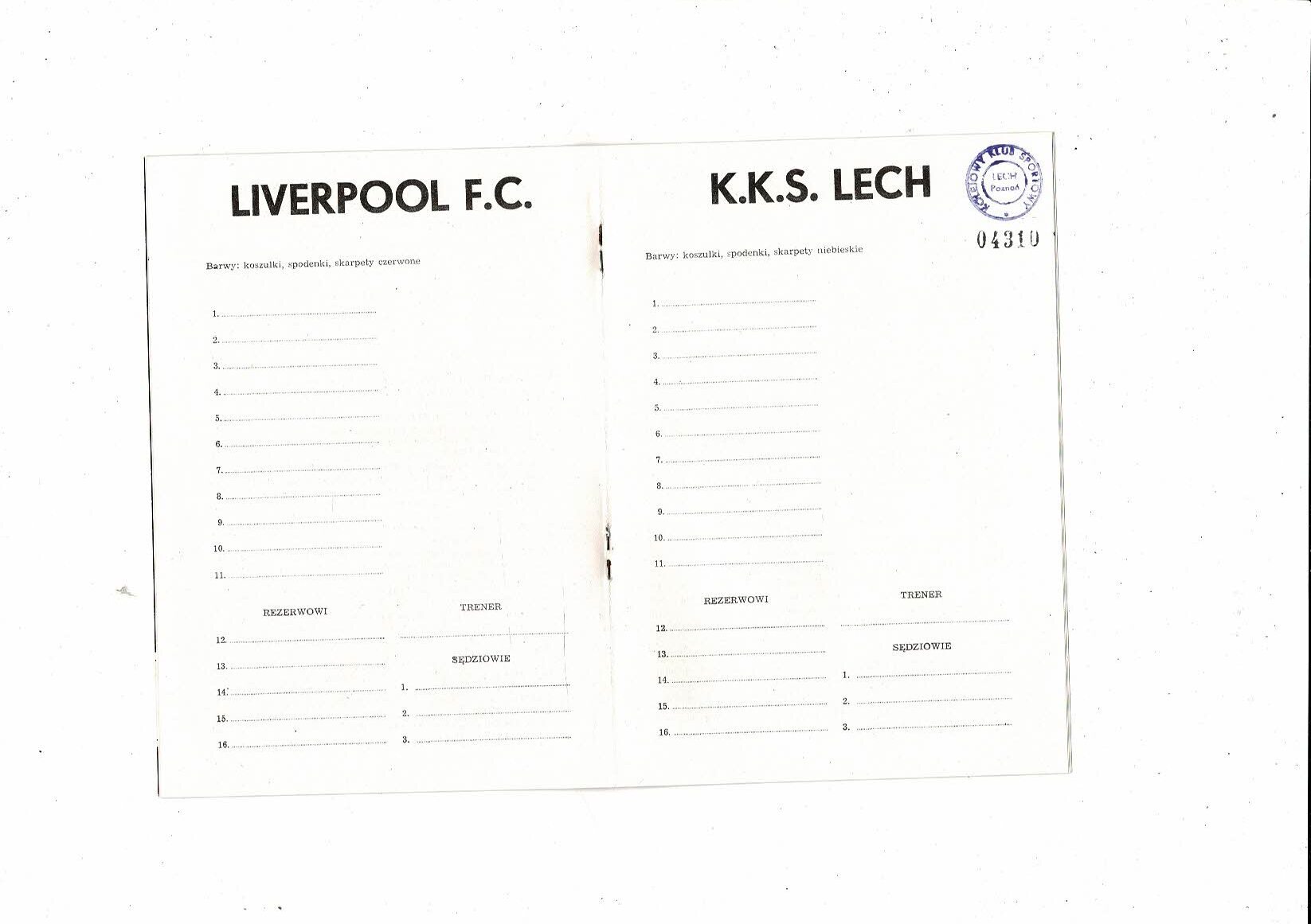 Lech Poznan v Liverpool European Cup Football Programme 1984/85