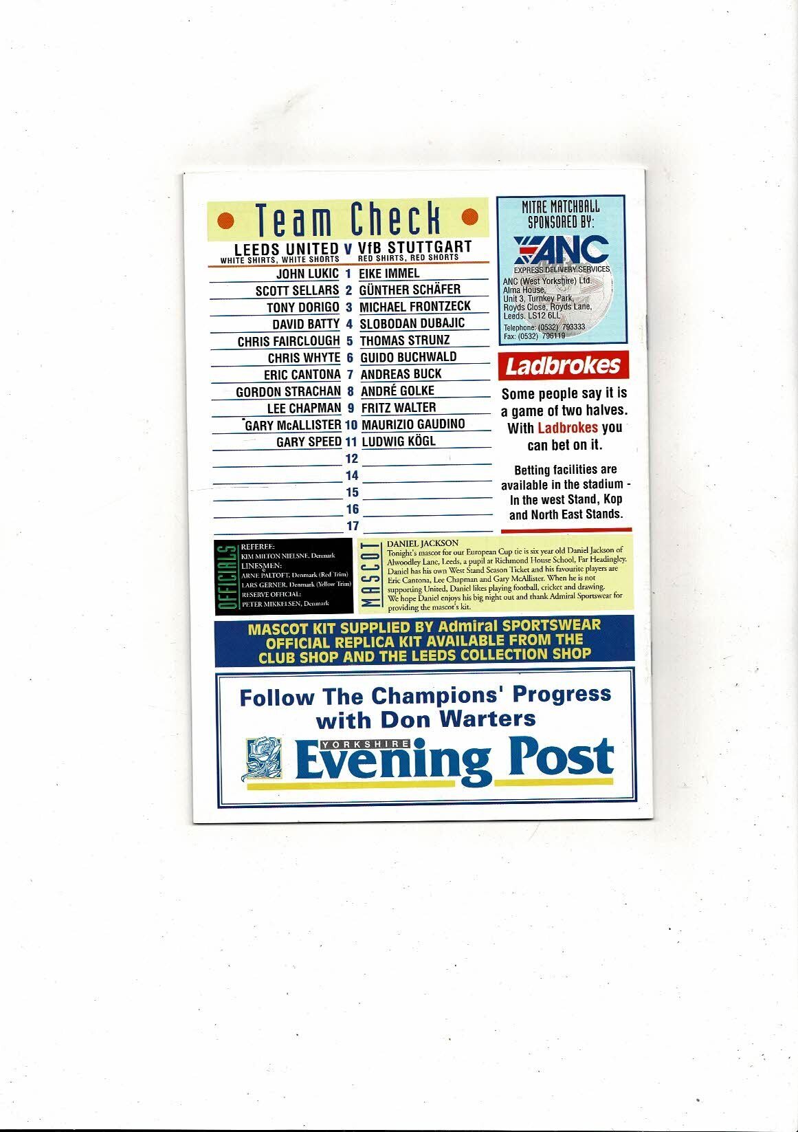 Leeds United V VfB Stuttgart European Champions Cup Football Programme 1992/93