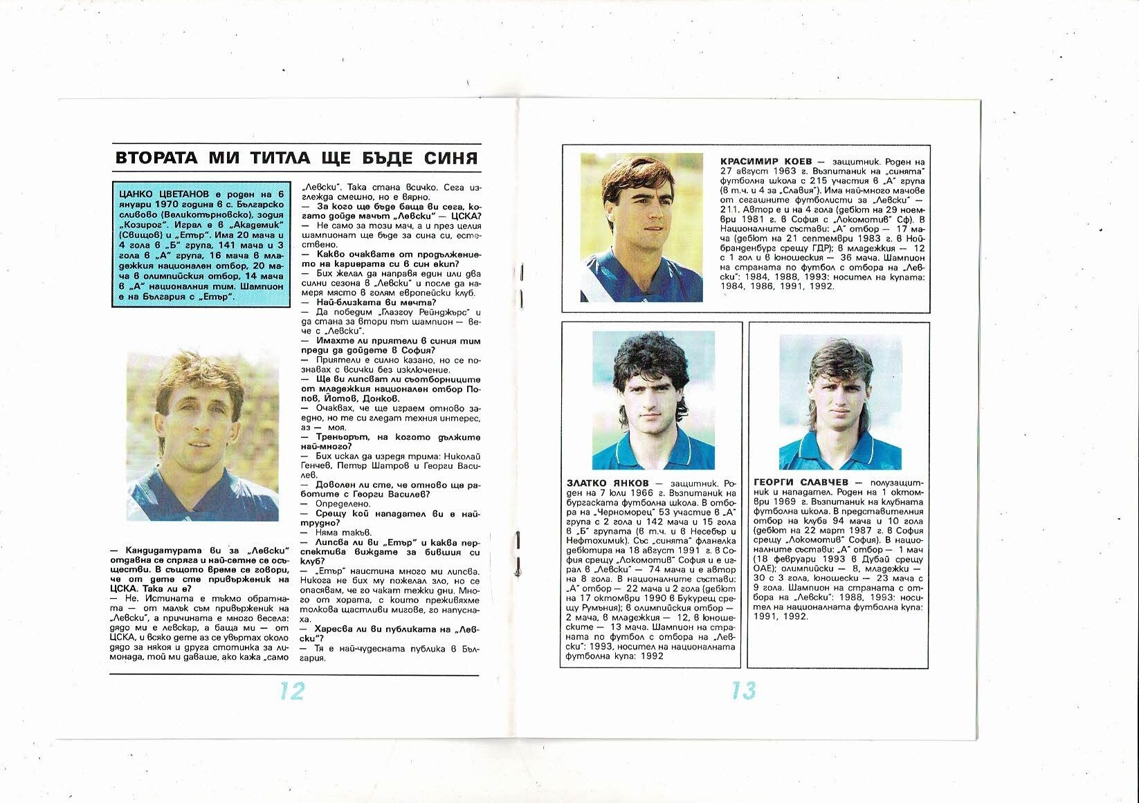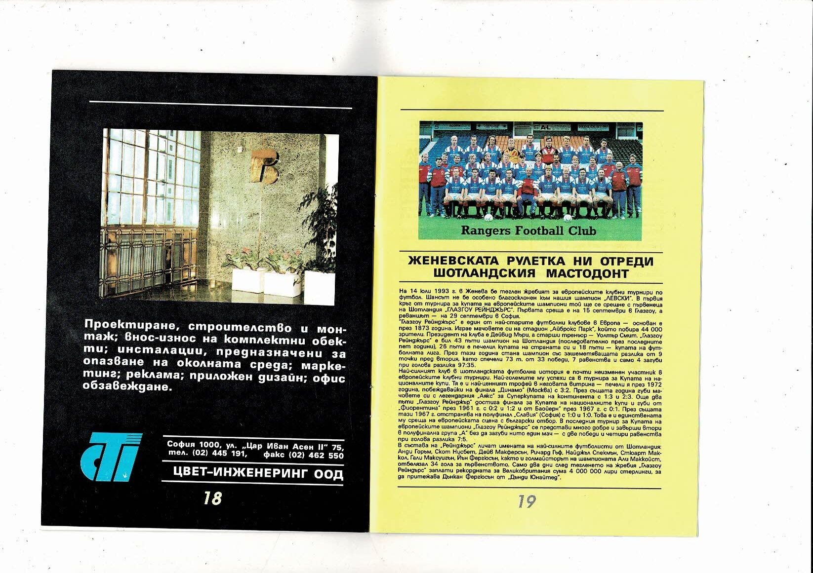 Levski Sofia v Glasgow Rangers Champions League Football Programme 1993/94