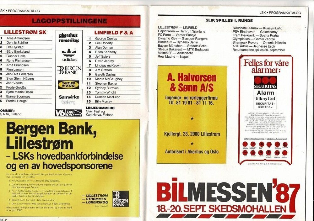 Lillestrom SK v Linfield European Cup Football Programme 1987/88
