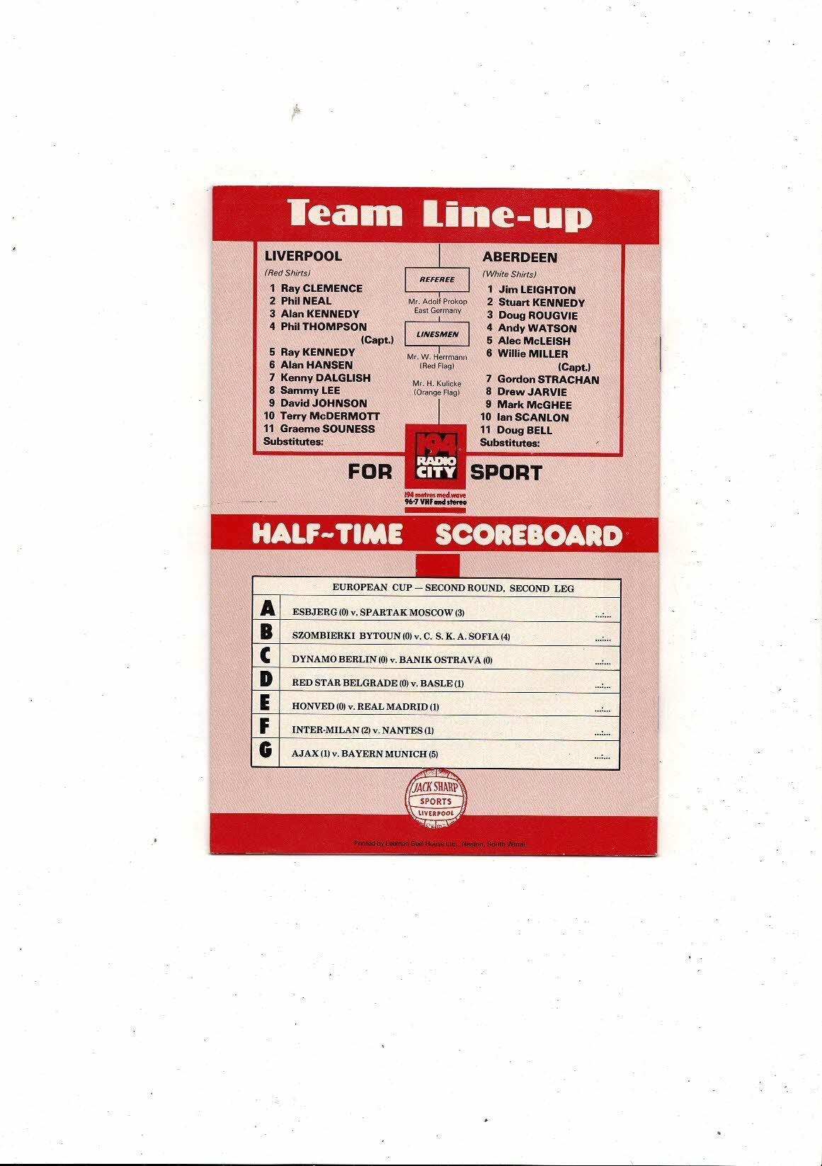 Liverpool v Aberdeen European Cup Football Programme 1980/81