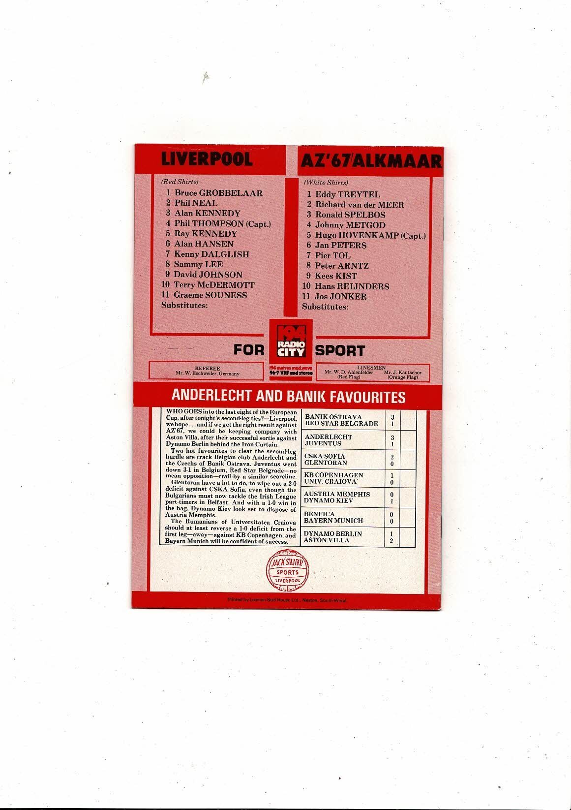 Liverpool v AZ 67 European Cup Football Programme 1981/82