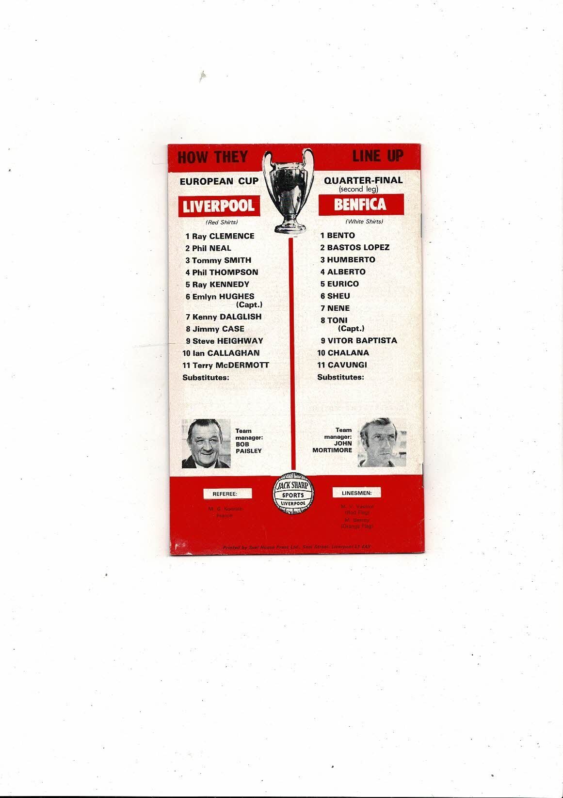 Liverpool v Benfica European Cup Football Programme 1977/78