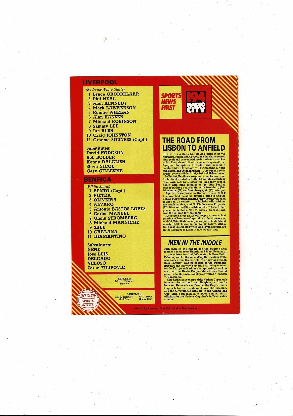 Liverpool v Benfica European Cup Football Programme 1983/84