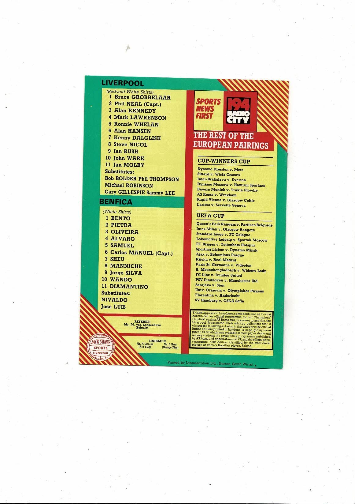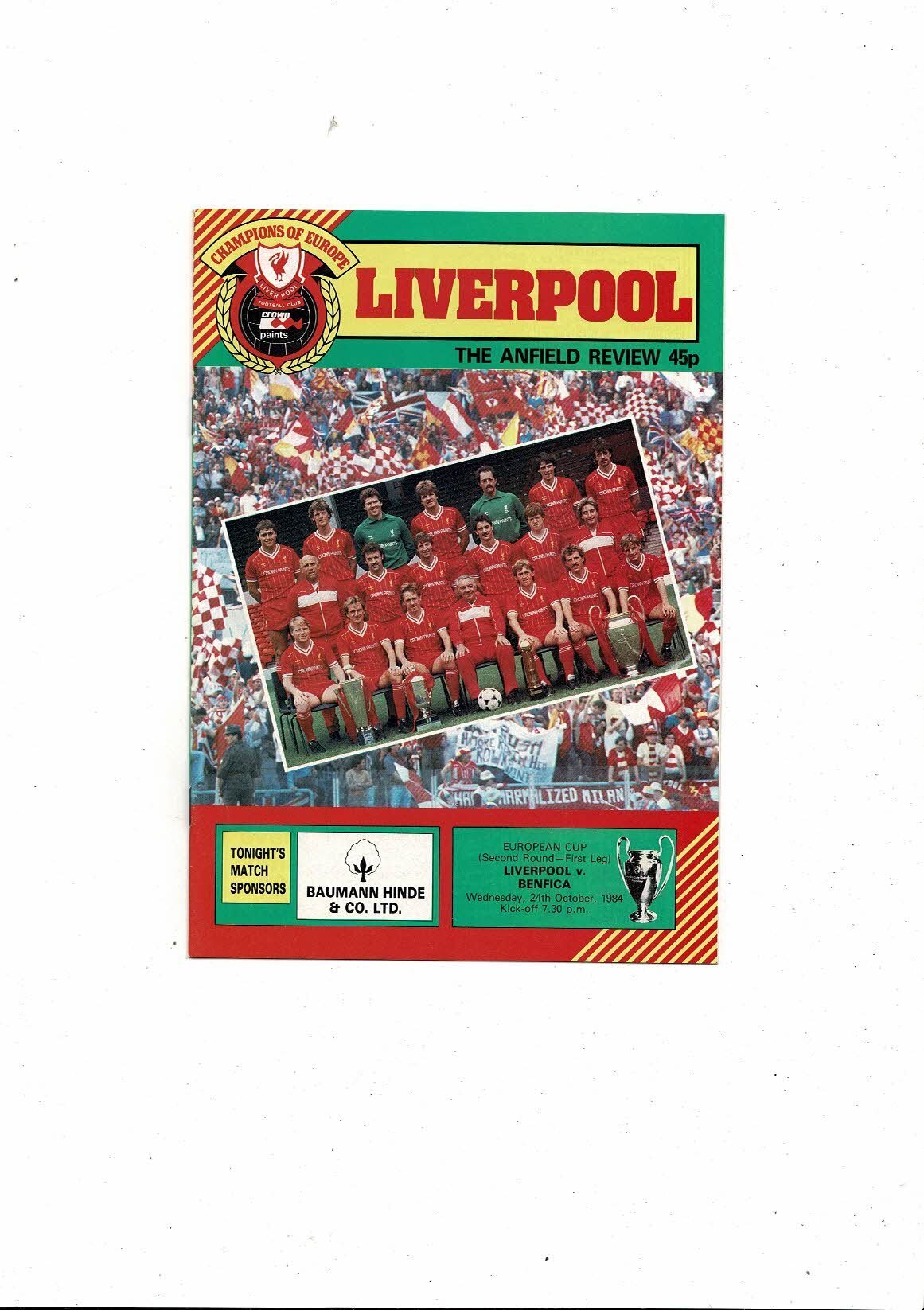 Liverpool v Benfica European Cup Football Programme 1984/85