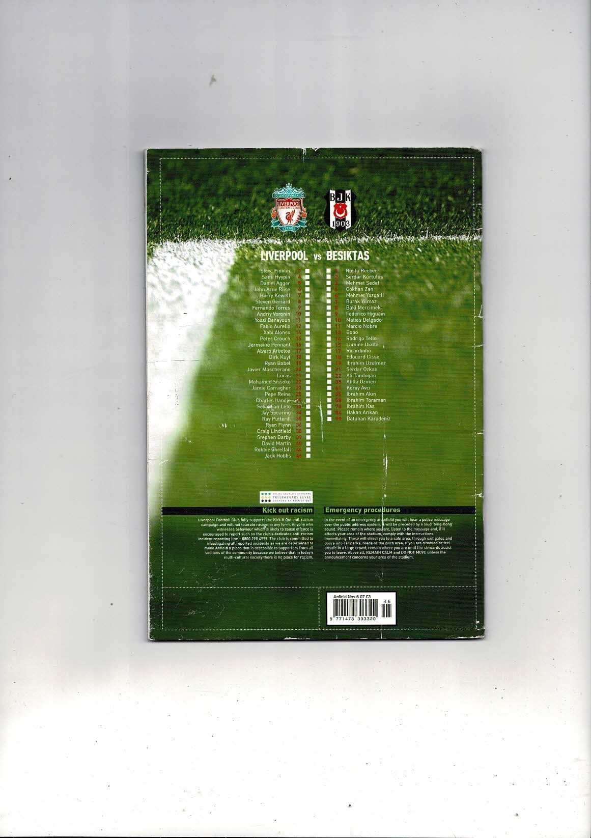 Liverpool v Besiktas Champions League Football Programme 2007/08