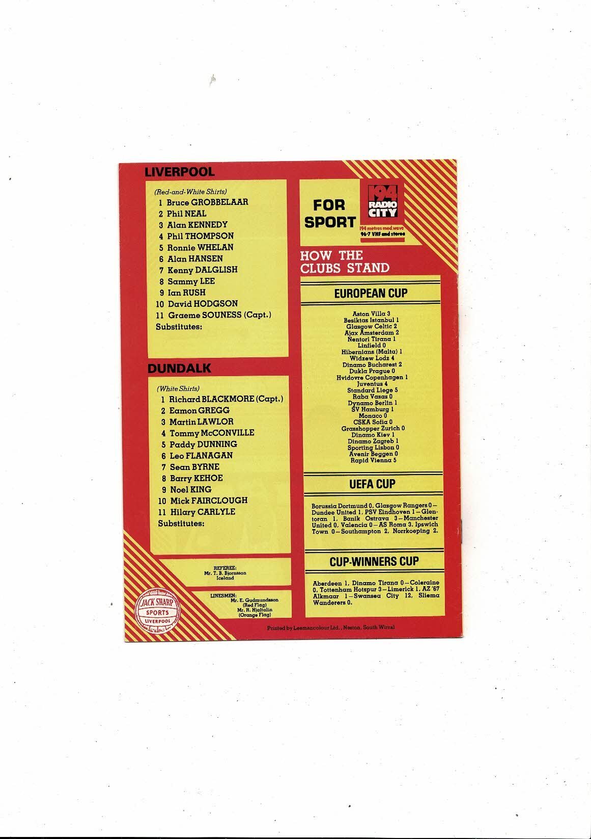 Liverpool v Dundalk European Cup Football Programme 1982/83