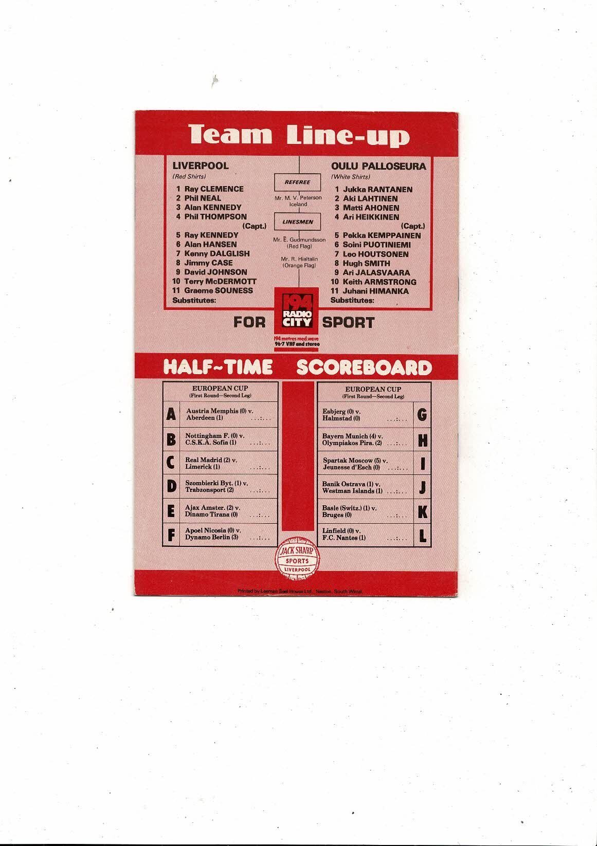 Liverpool v Palloseura European Cup Football Programme 1980/81