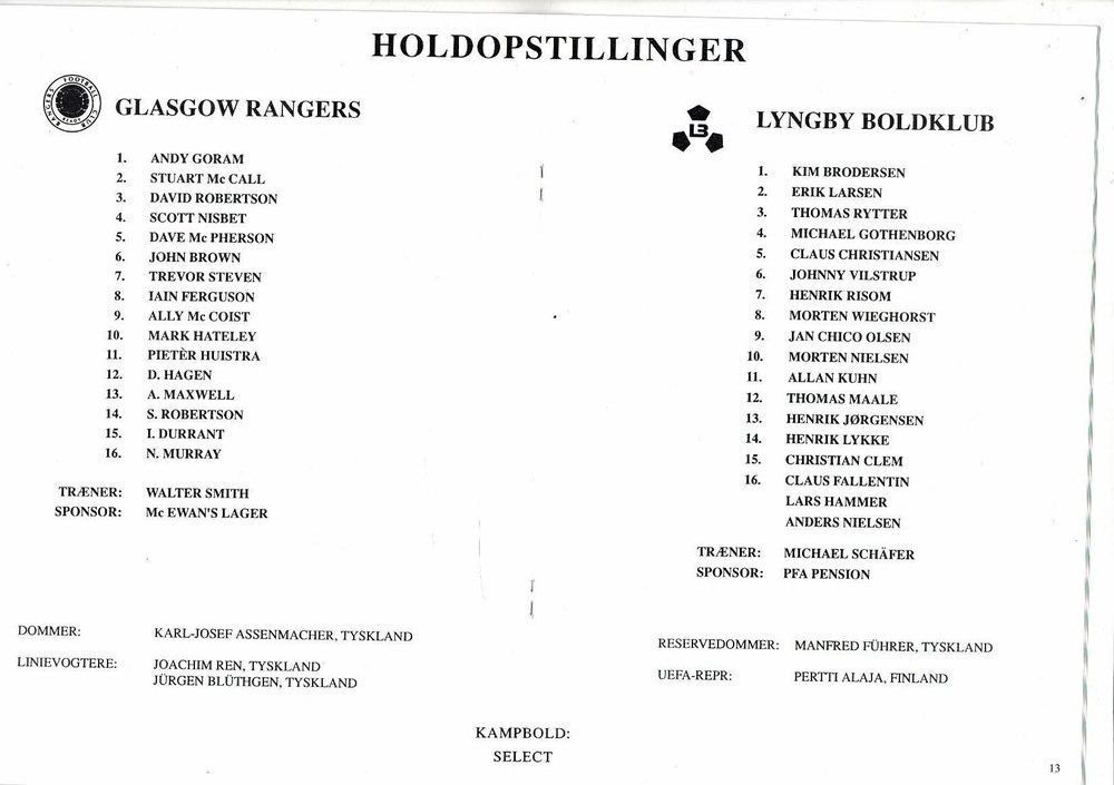 Lyngby Boldklub v Glasgow Rangers European Cup Football Programme 1992/93