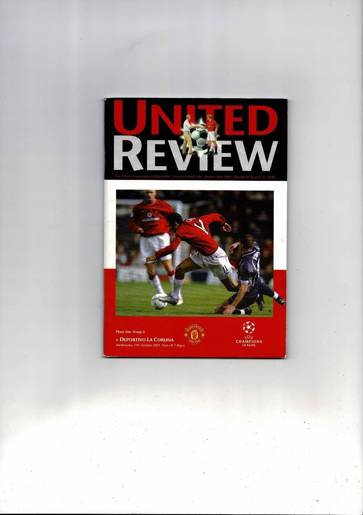 Manchester United v Deportivo Champions League Football Programme 2001/02 Oct.