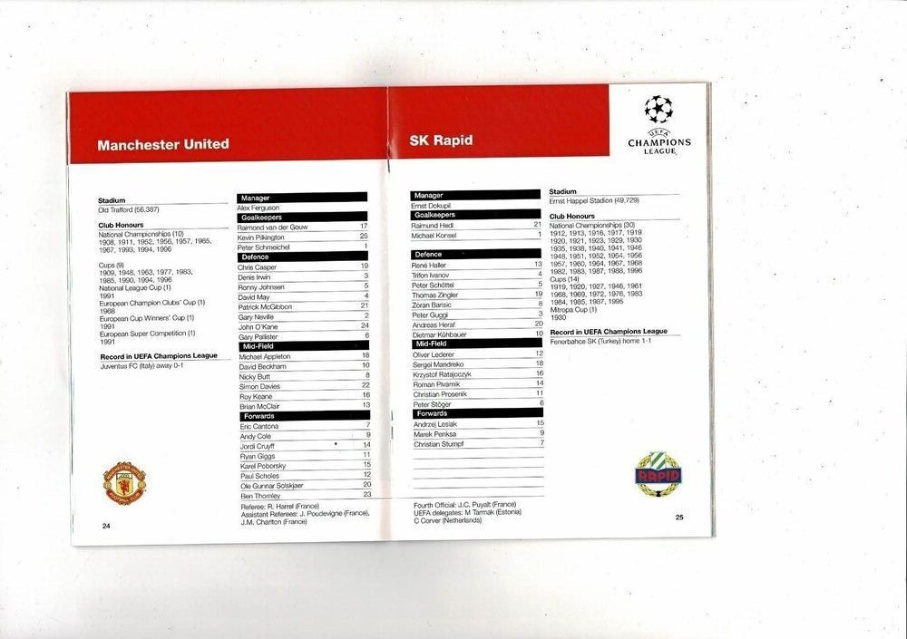 Manchester United v SK Rapid Vienna Champions League Football Programme 1996/97