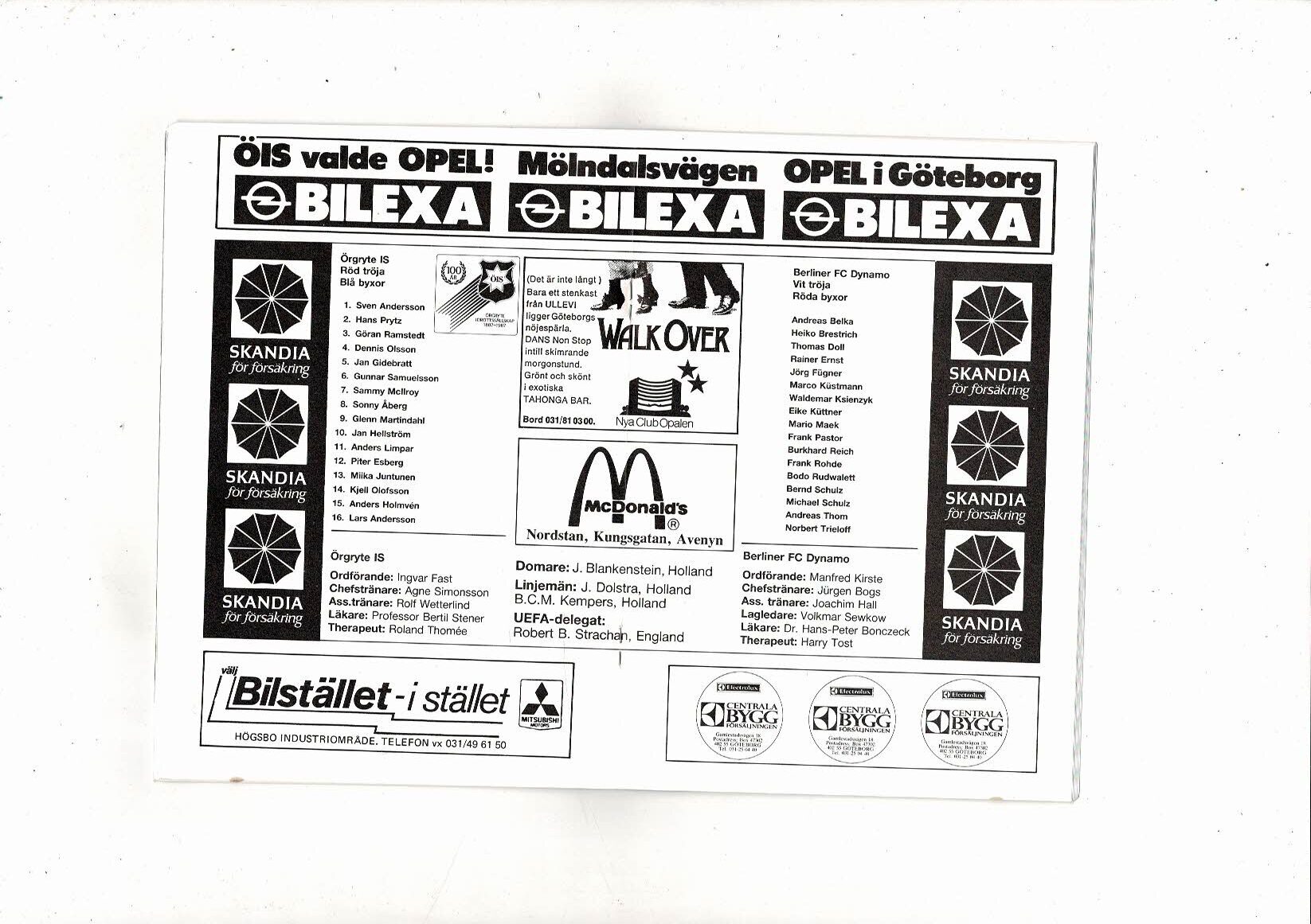 Orgryte v Dynamo Berlin European Cup Football Programme 1986/87