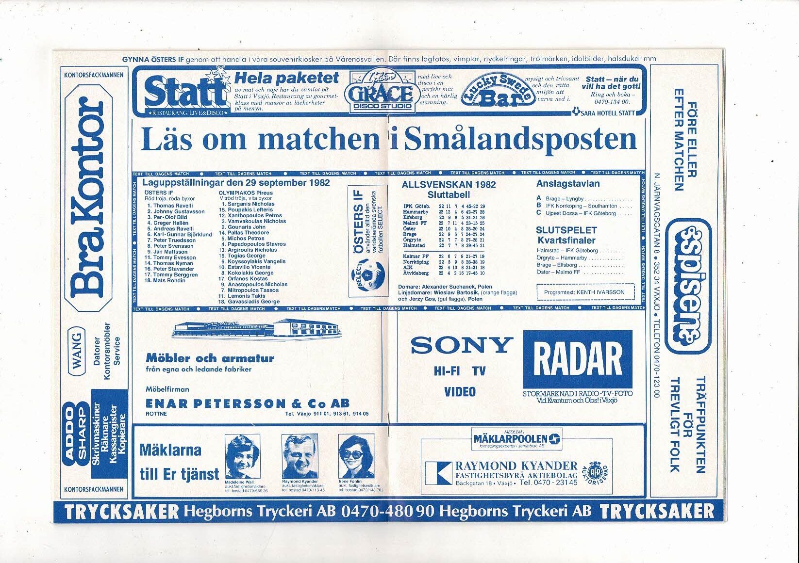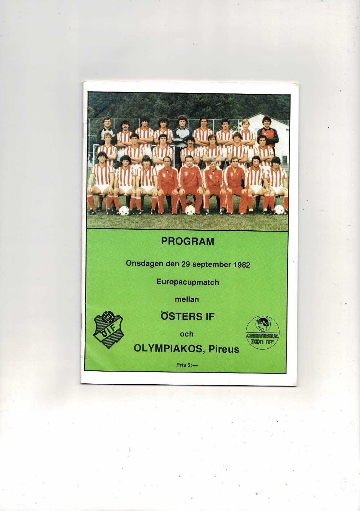 Osters v Olympiakos European Cup Football Programme 1982/83