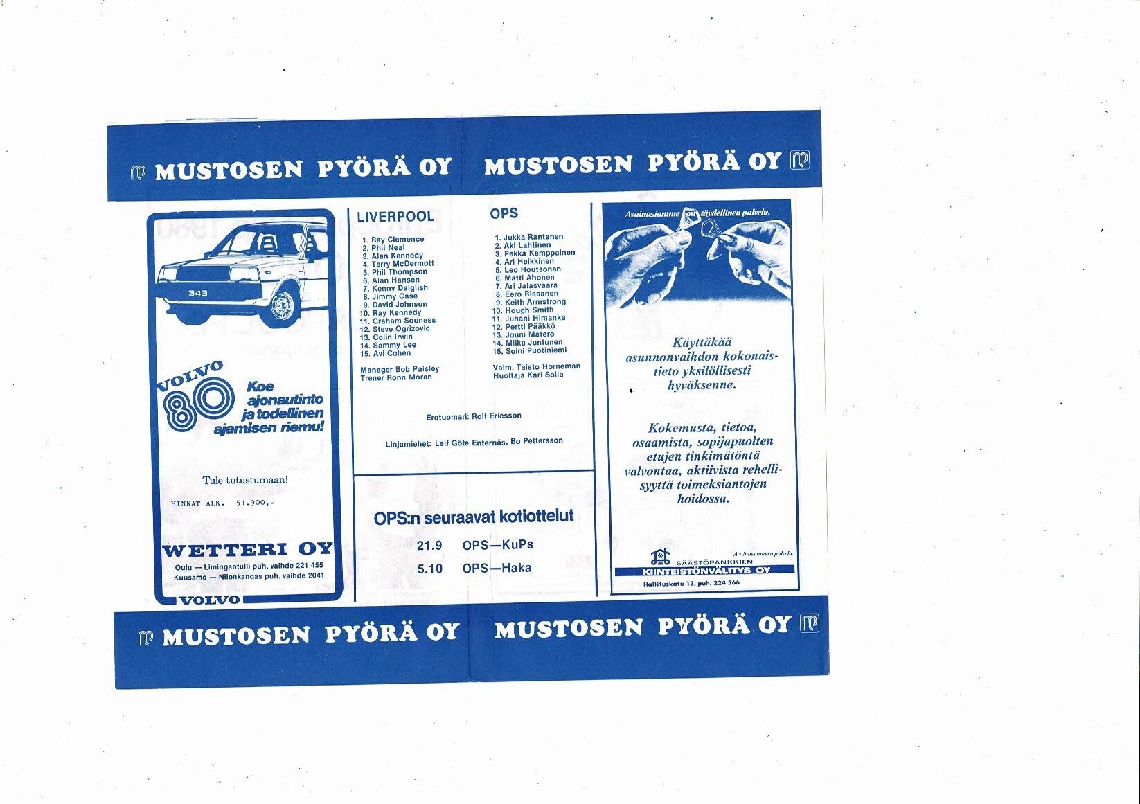 Oulun Palloseura v Liverpool European Cup Football Programme 1980/81