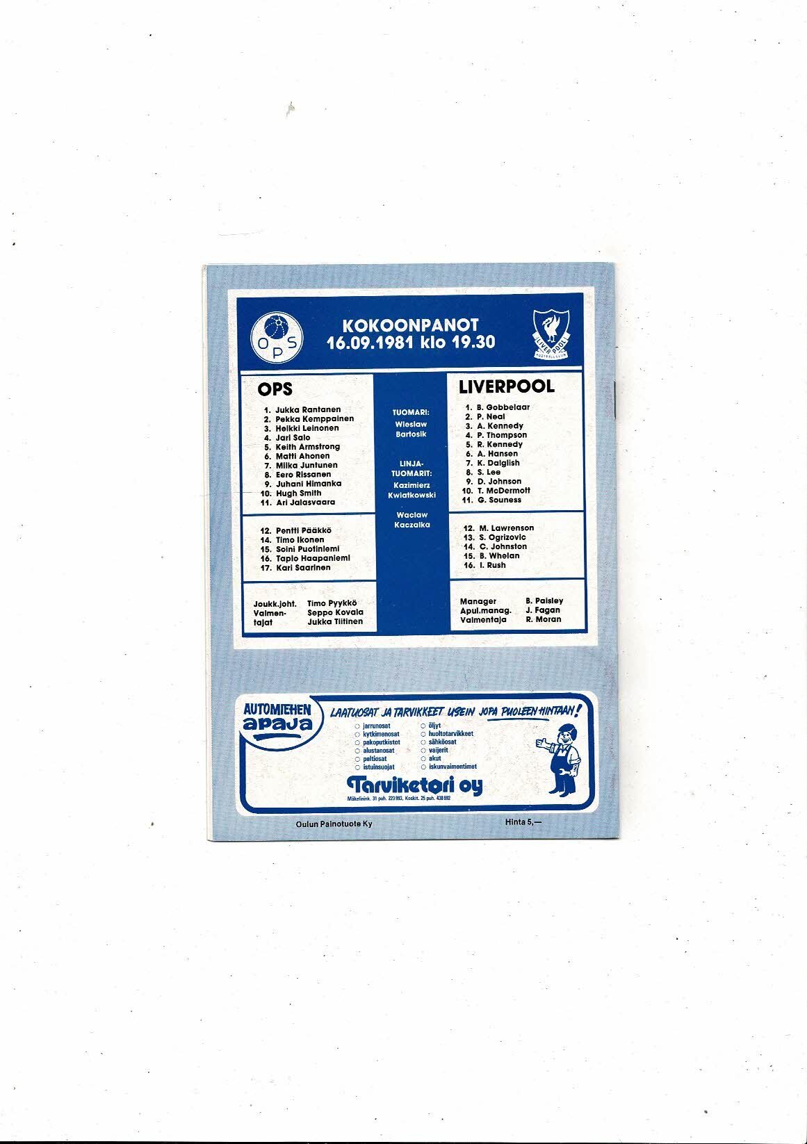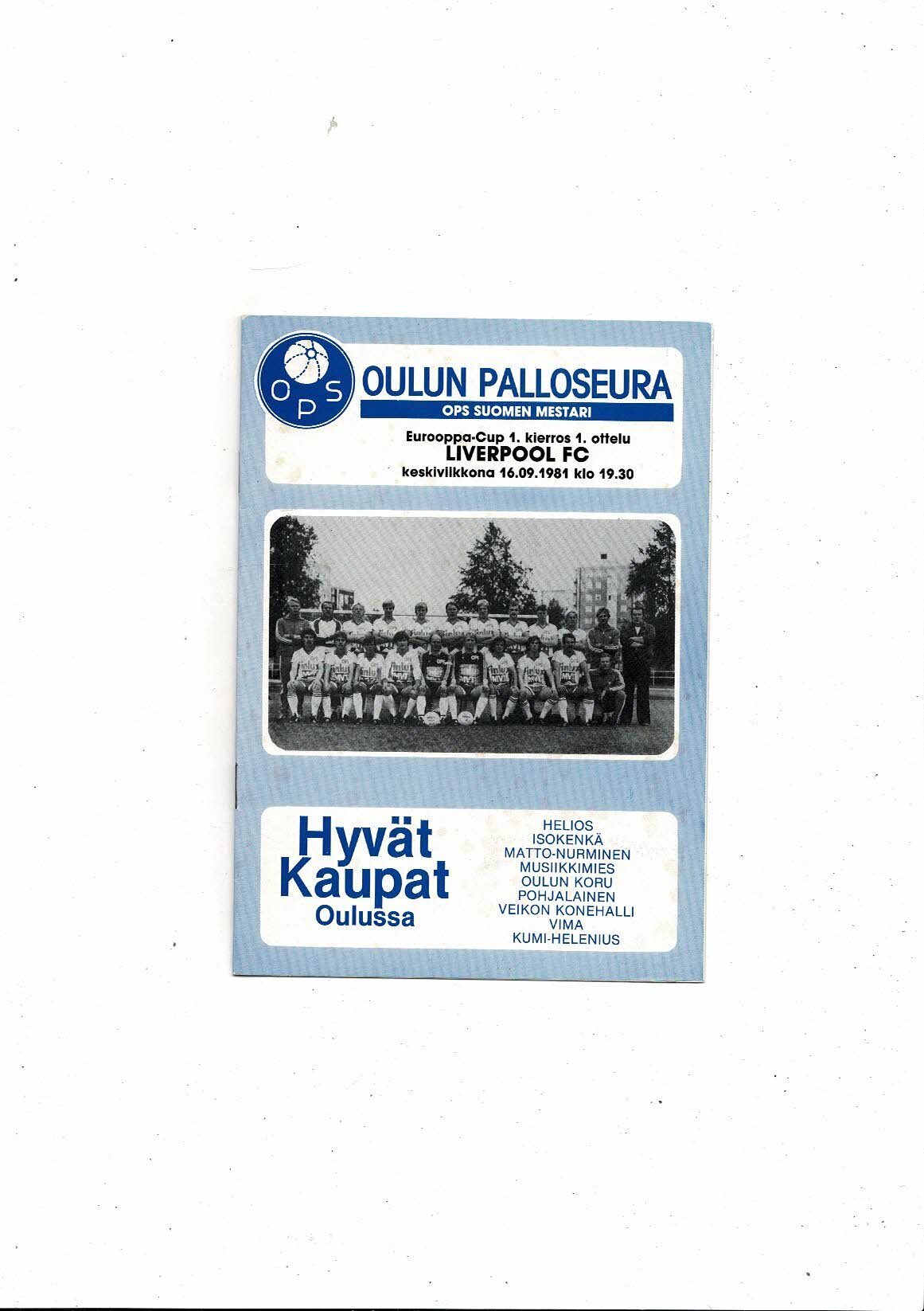 Oulun Palloseura v Liverpool European Cup Football Programme 1981/82