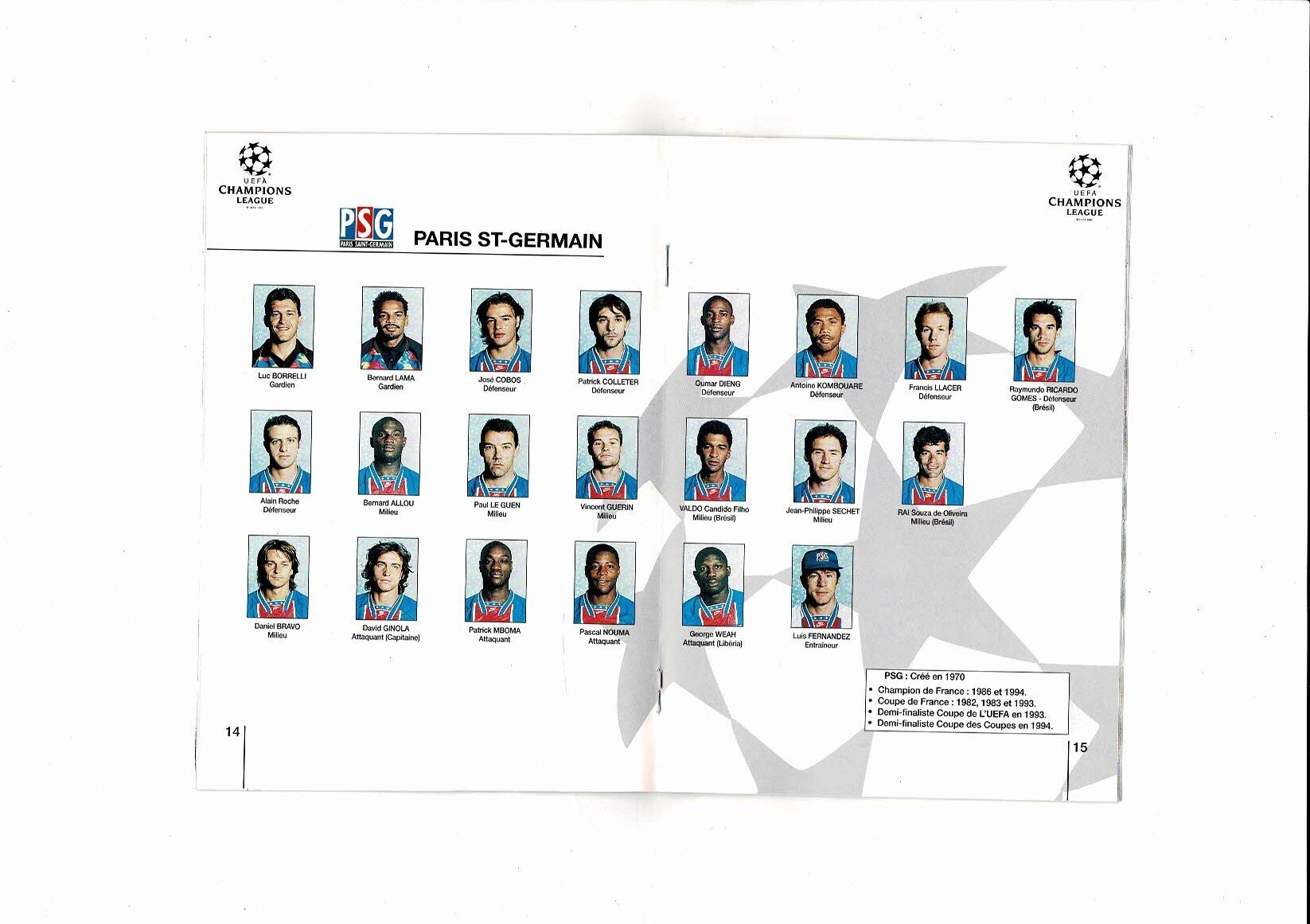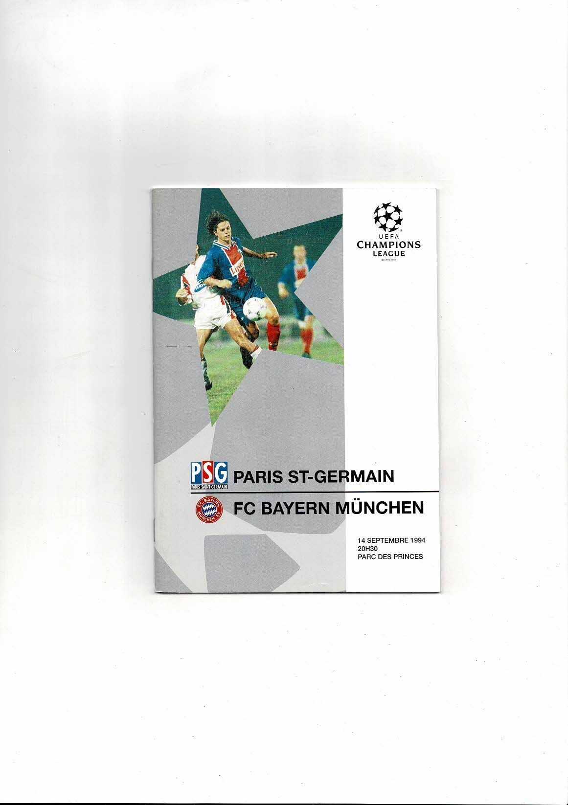 Paris St Germain v Bayern Munich UEFA Champions League Football Programme 1994/95