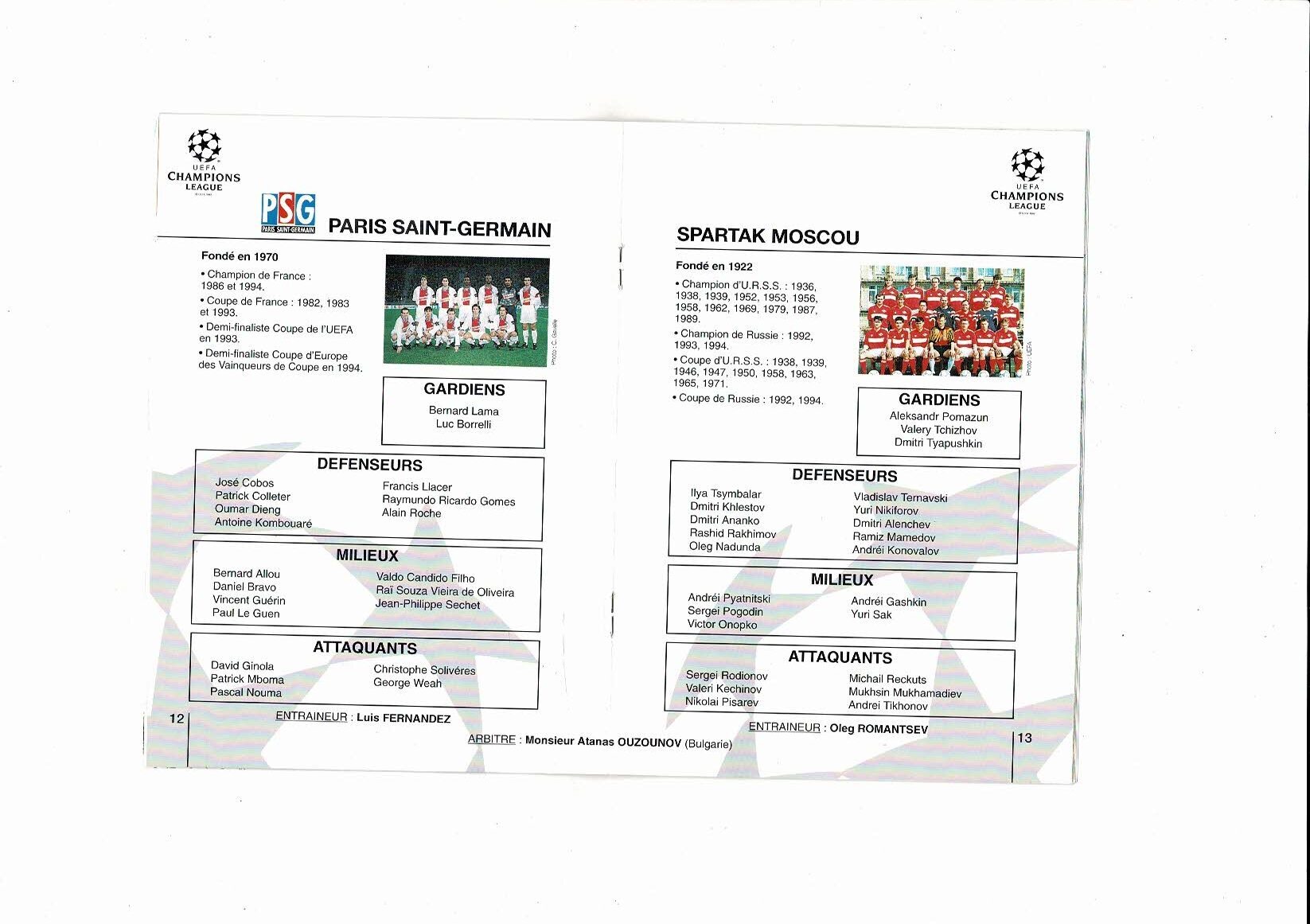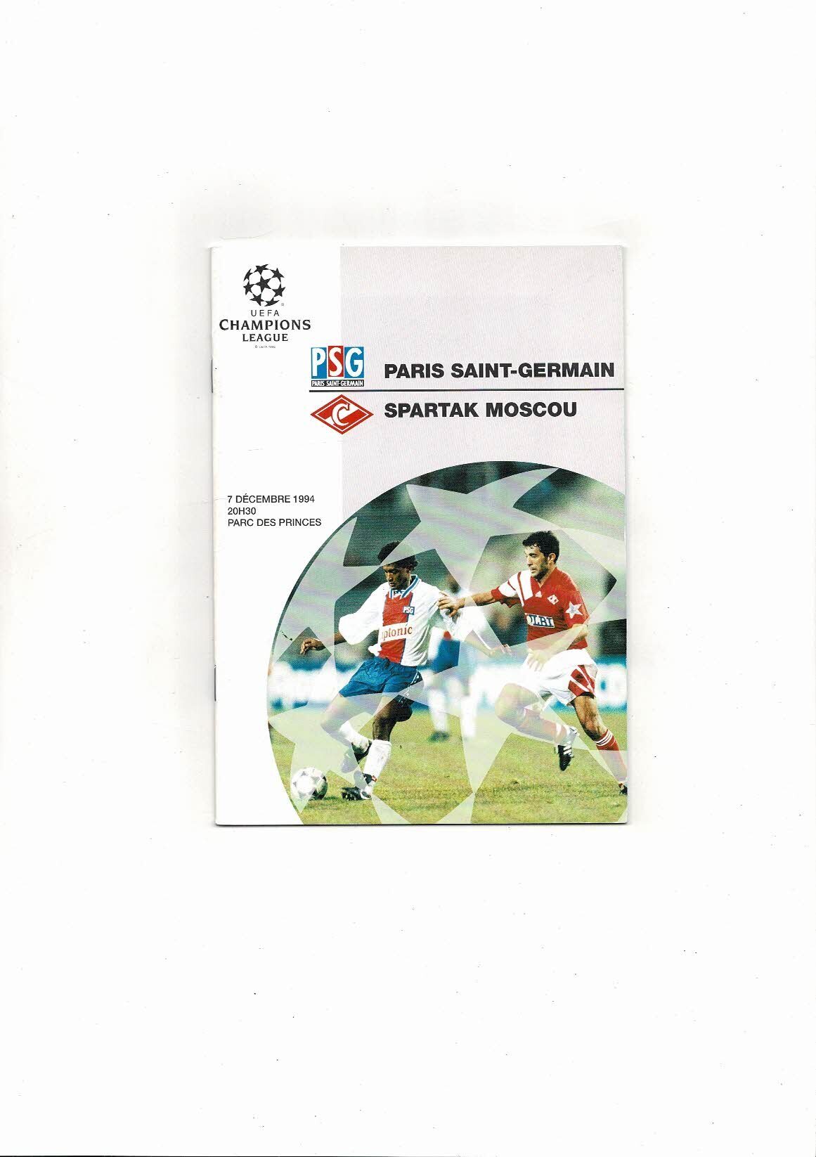 Paris St Germain v Spartak Moscow UEFA Champions League Football Programme 1994/95
