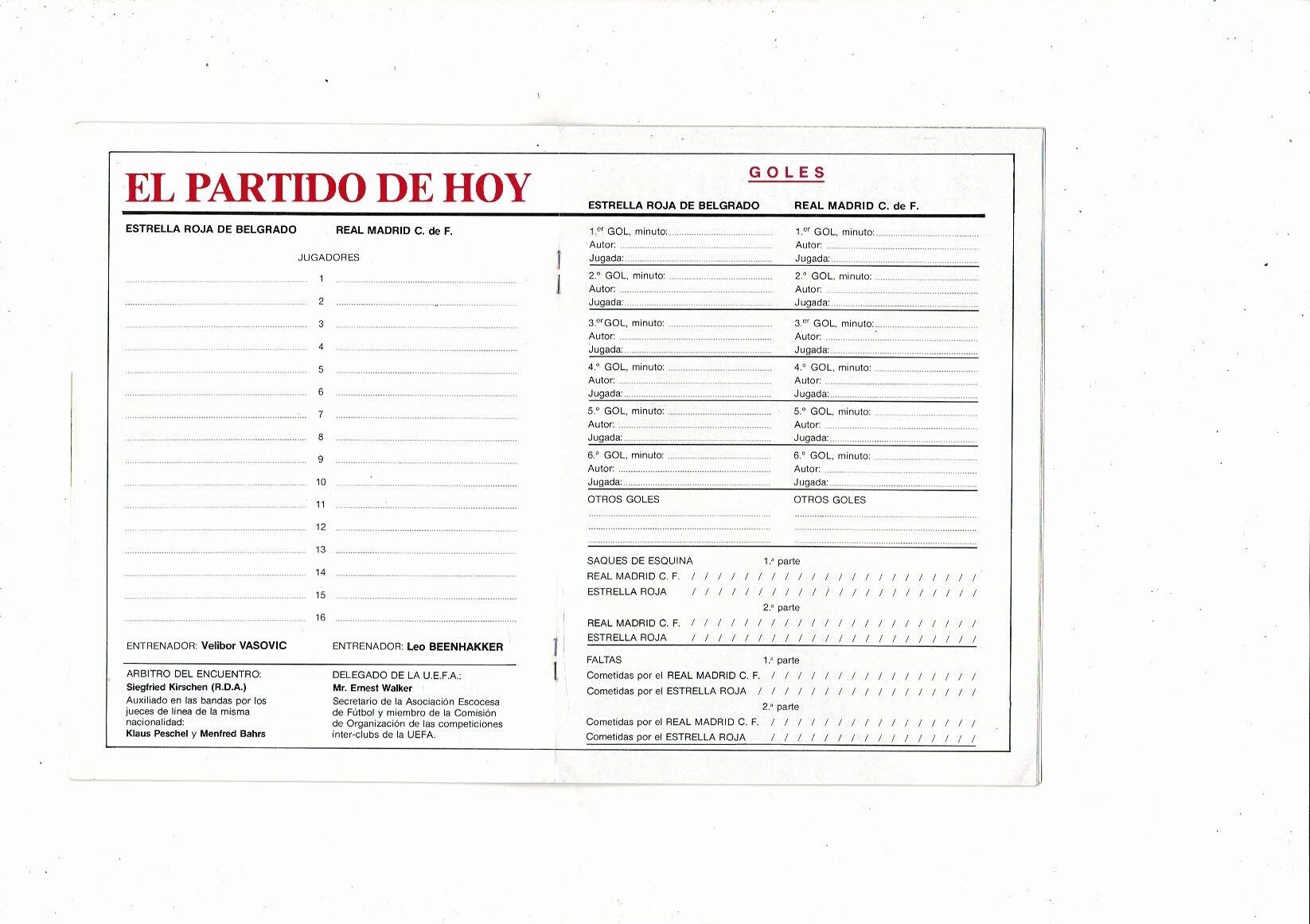 Real Madrid v Red Star Belgrade European Cup Football Programme 1986/87