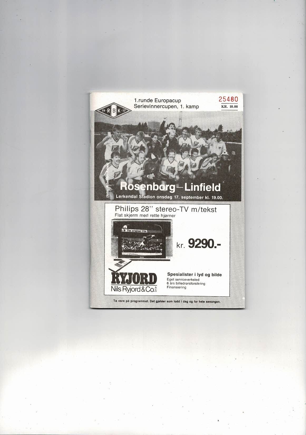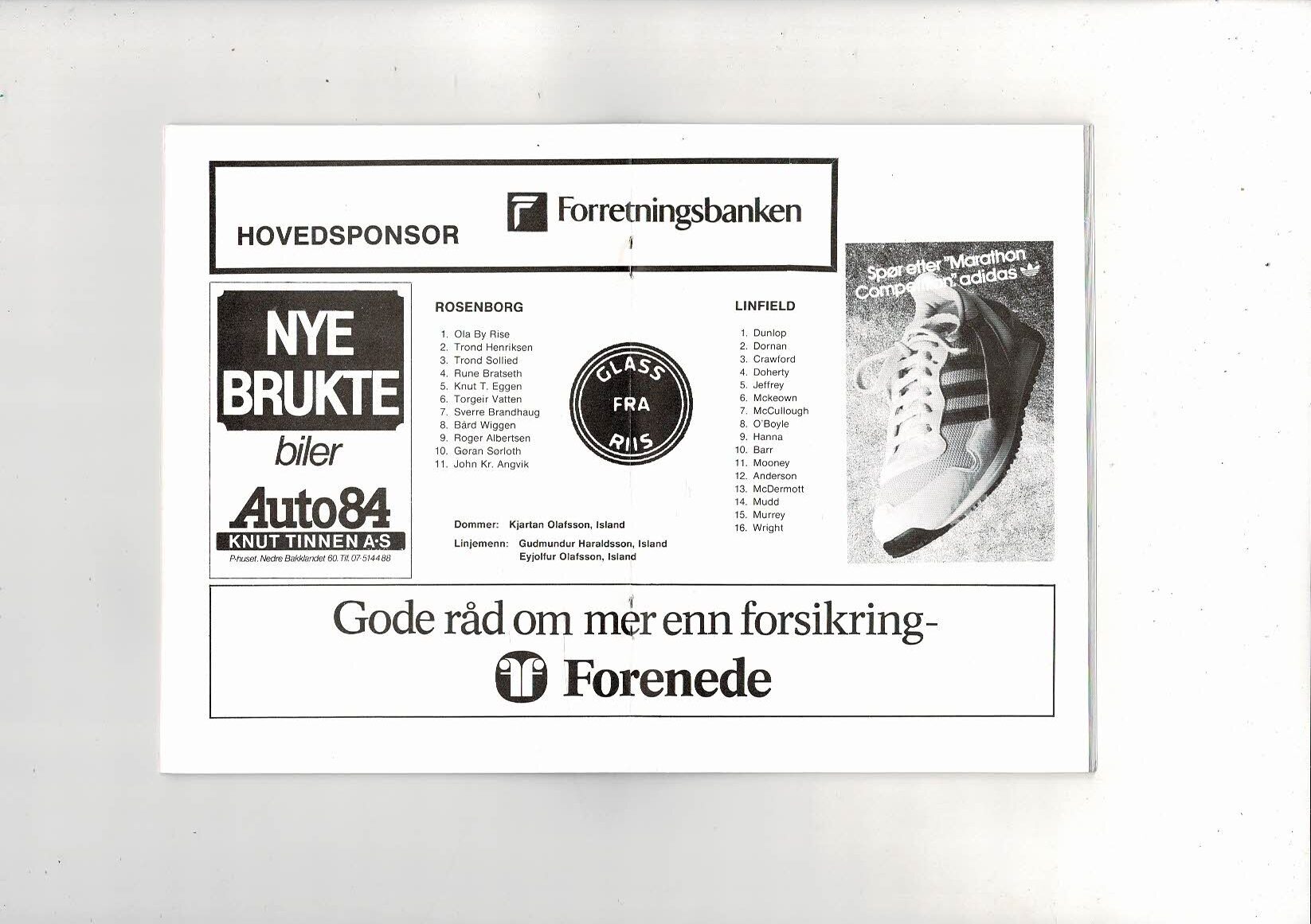 Rosenborg v Linfield European Cup Football Programme 1986/87