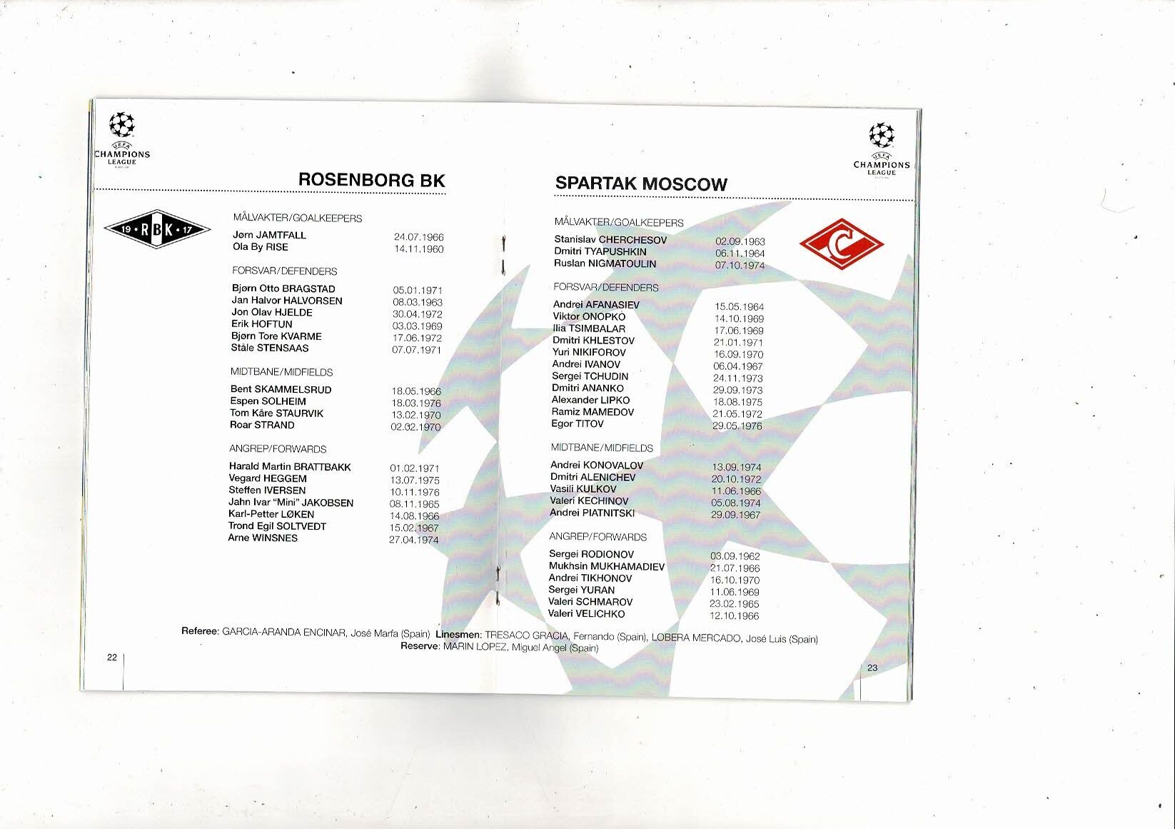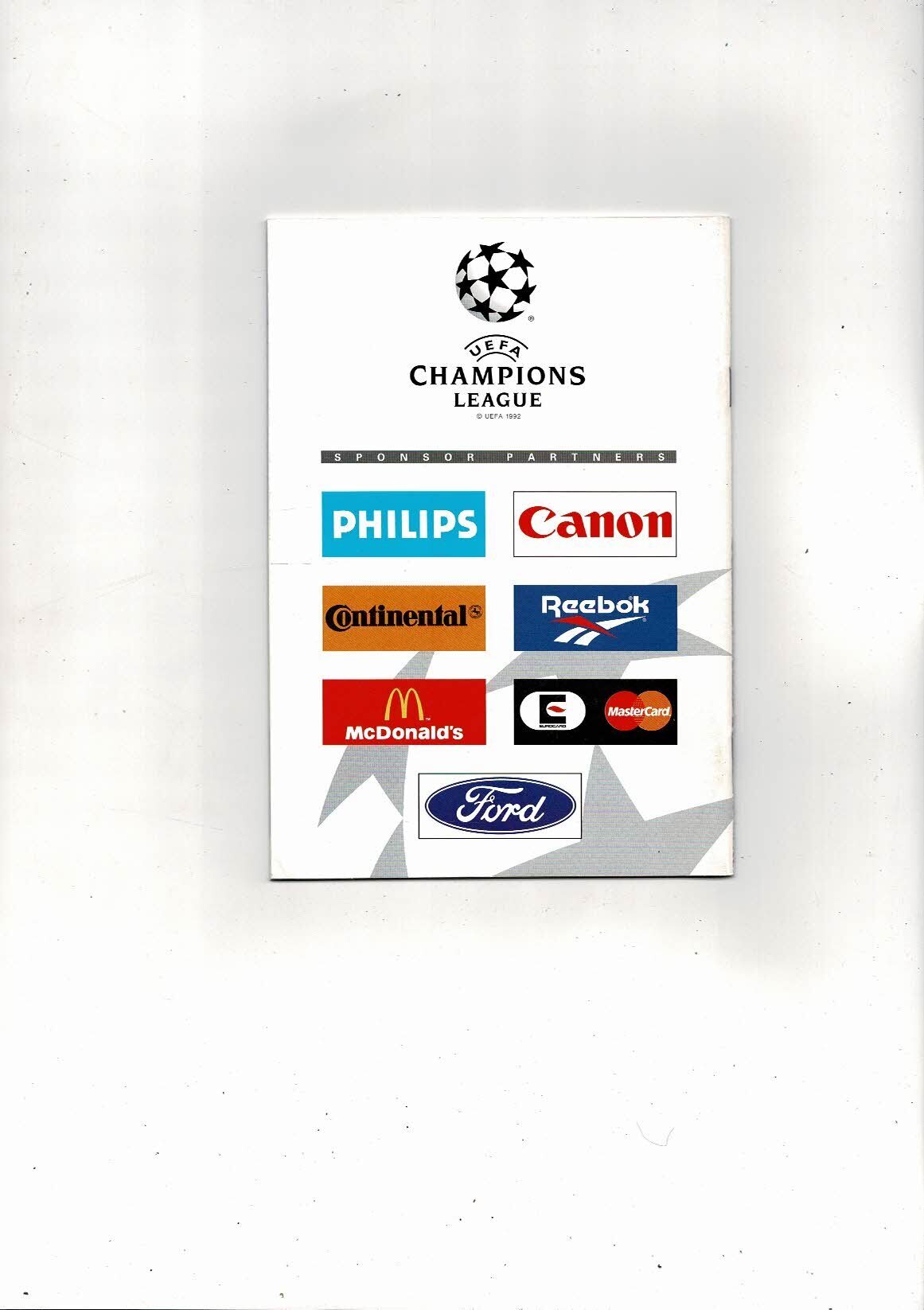 Rosenborg v Spartak Moscow UEFA Champions League Football Programme 1995/96