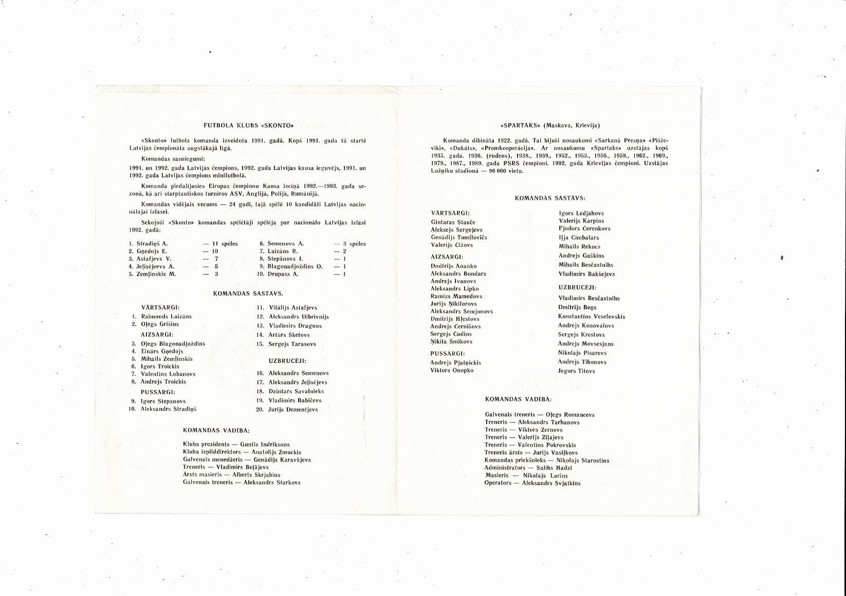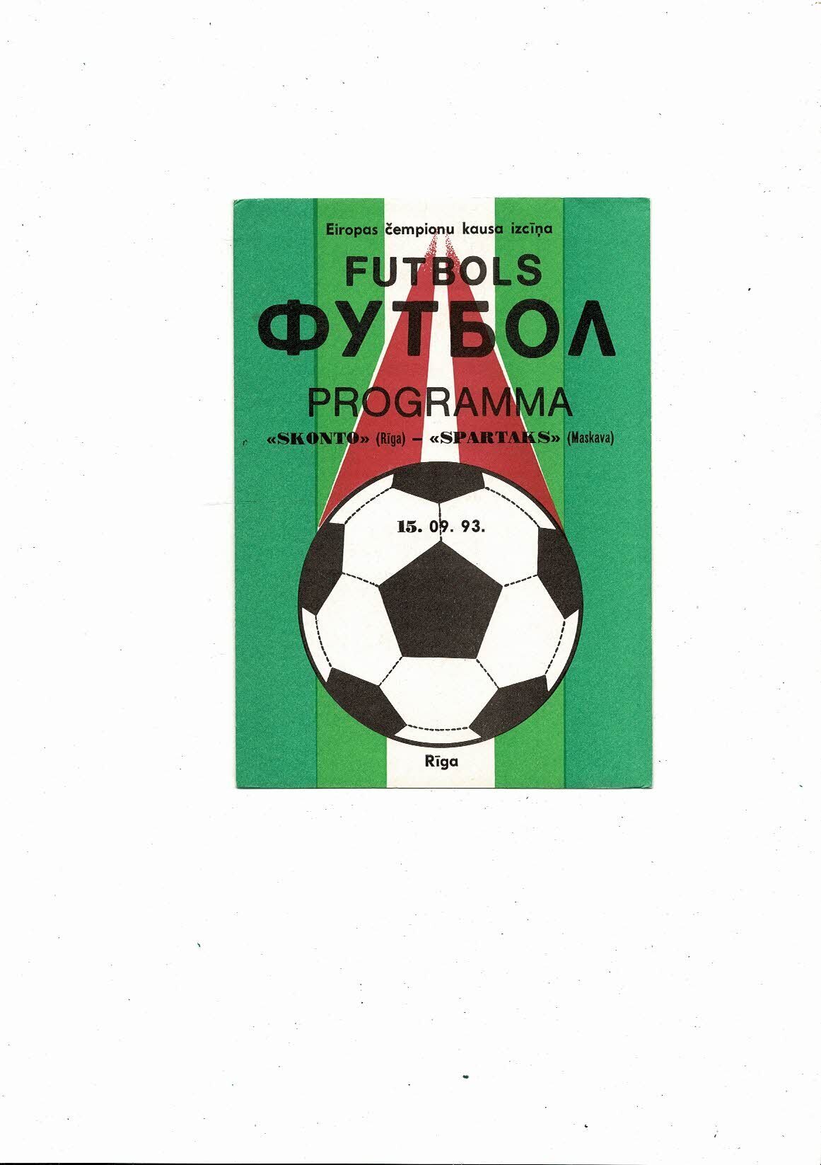 Skonta Riga v Spartak Moscow Champions League Football Programme 1993/94