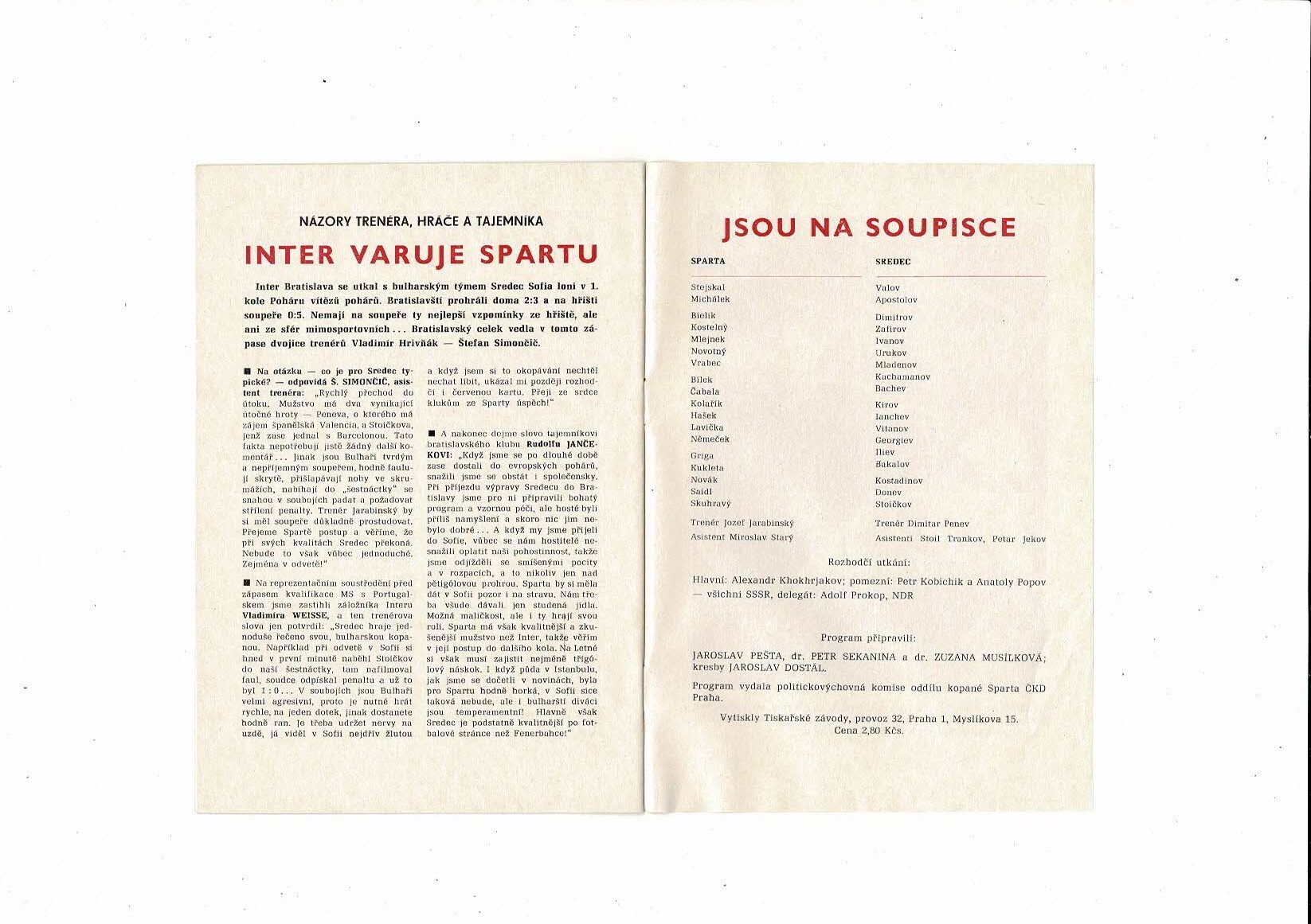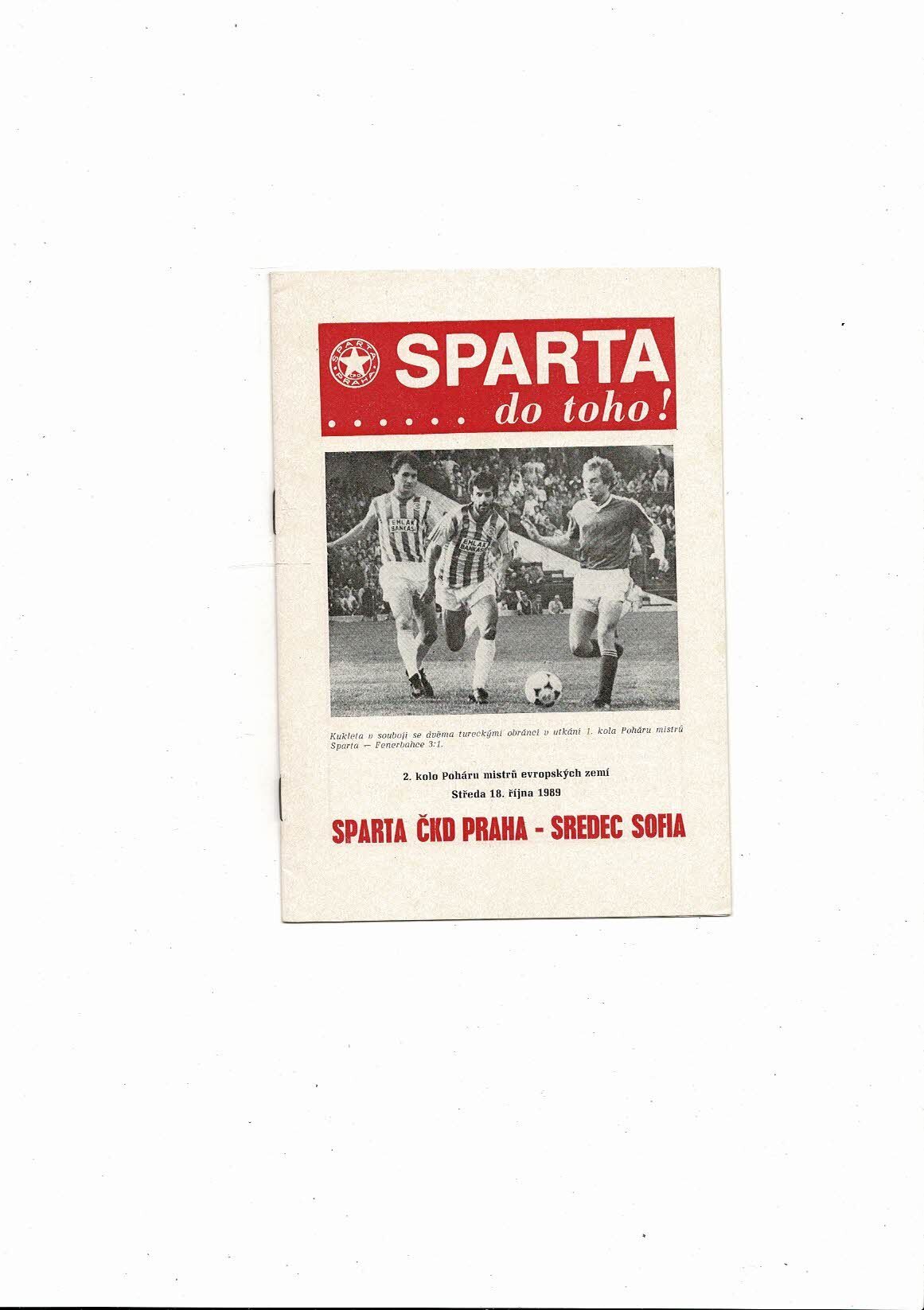 Sparta Prague v CSKA Sofia European Cup Football Programme 1989/90