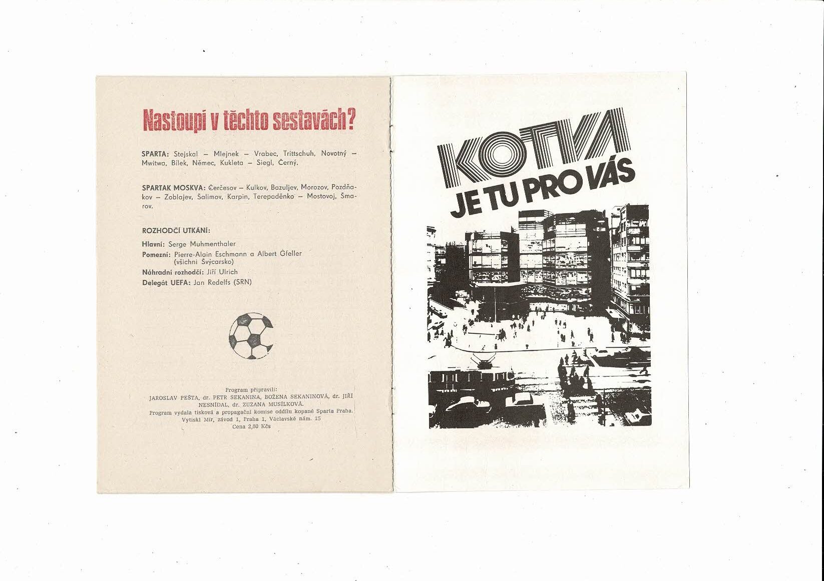 Sparta Prague v Spartak Moscow European Cup Football Programme 1990/91