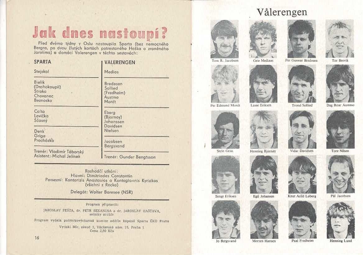 Sparta Prague v Valerengen Oslo European Cup Football Programme 1984/85