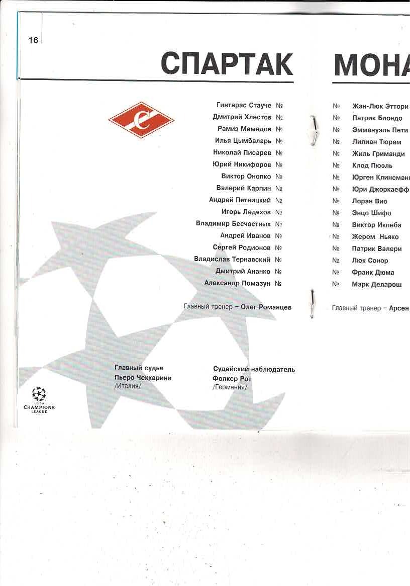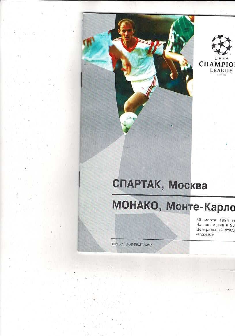 Spartak Moscow v AS Monaco UEFA Champions League Football Programme 1993/94