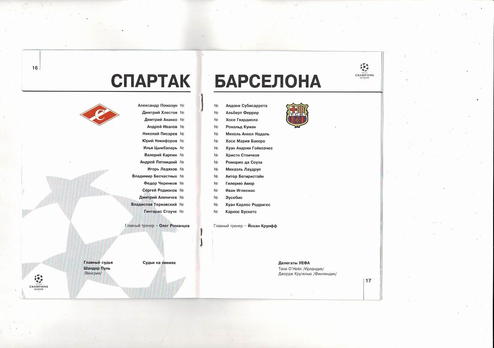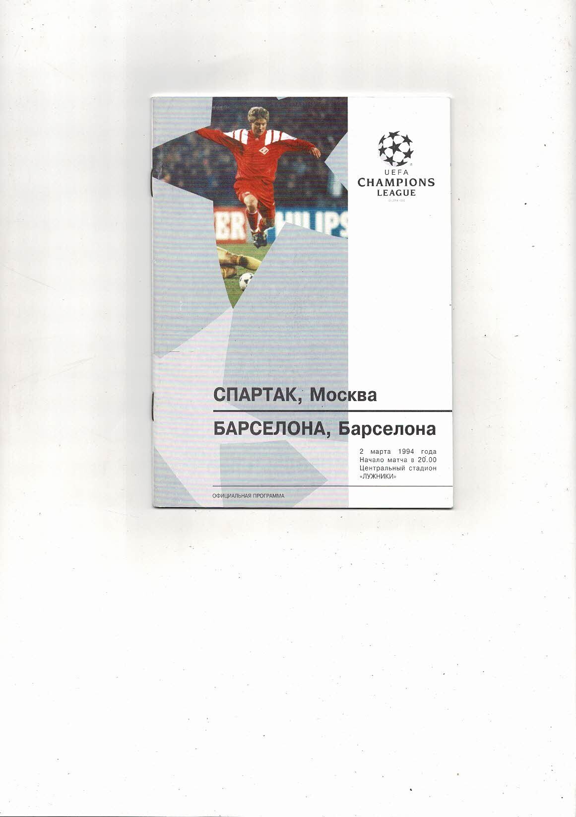 Spartak Moscow v Barcelona UEFA Champions League Football Programme 1993/94