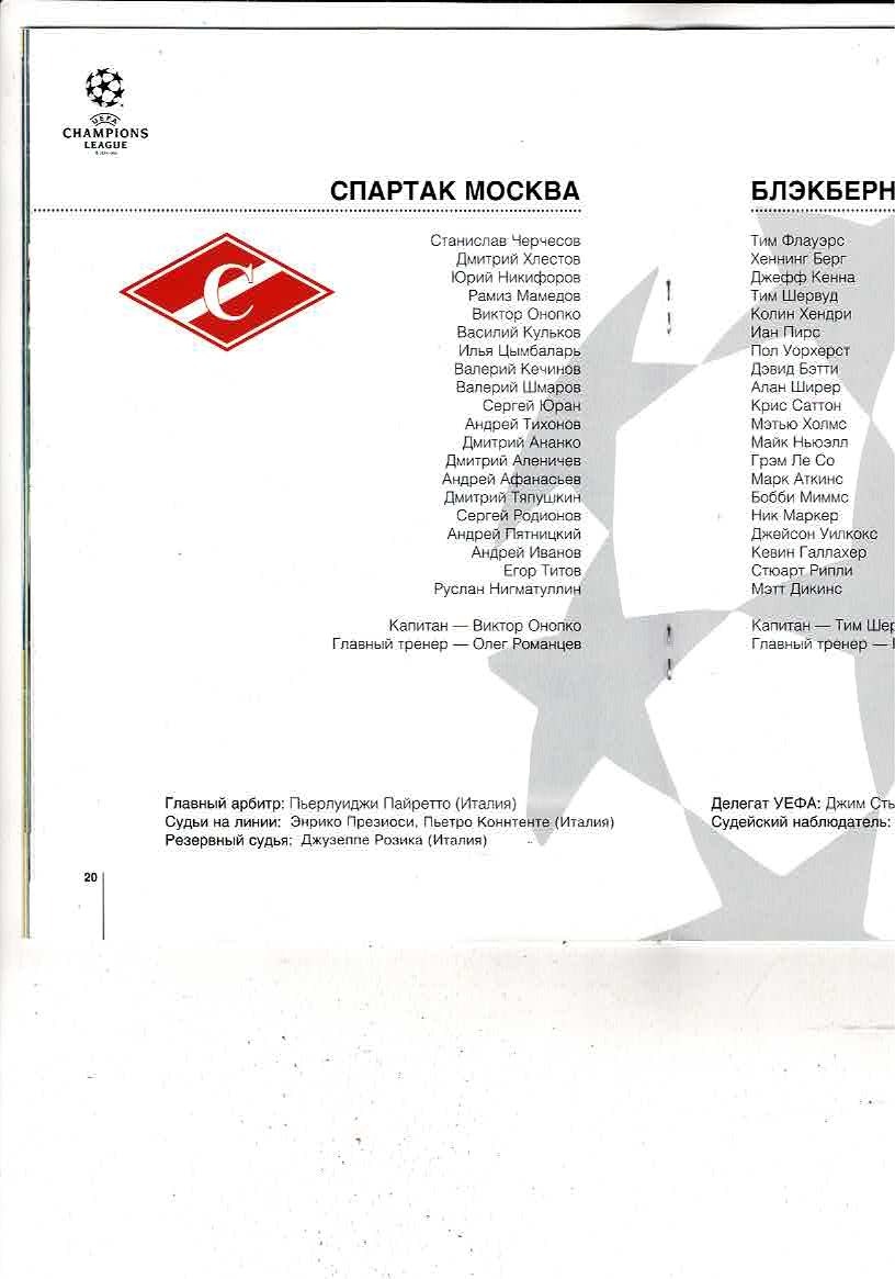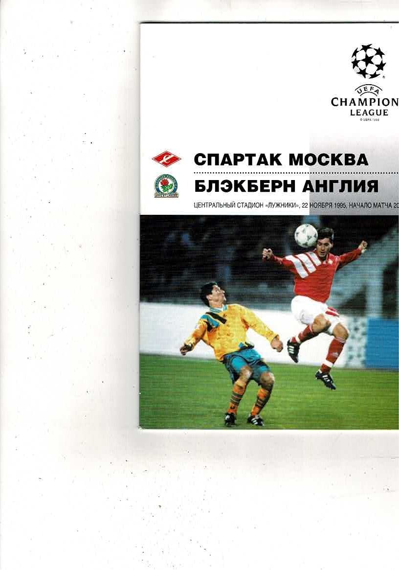 Spartak Moscow v Blackburn Rovers UEFA Champions League Football Programme 1995/96