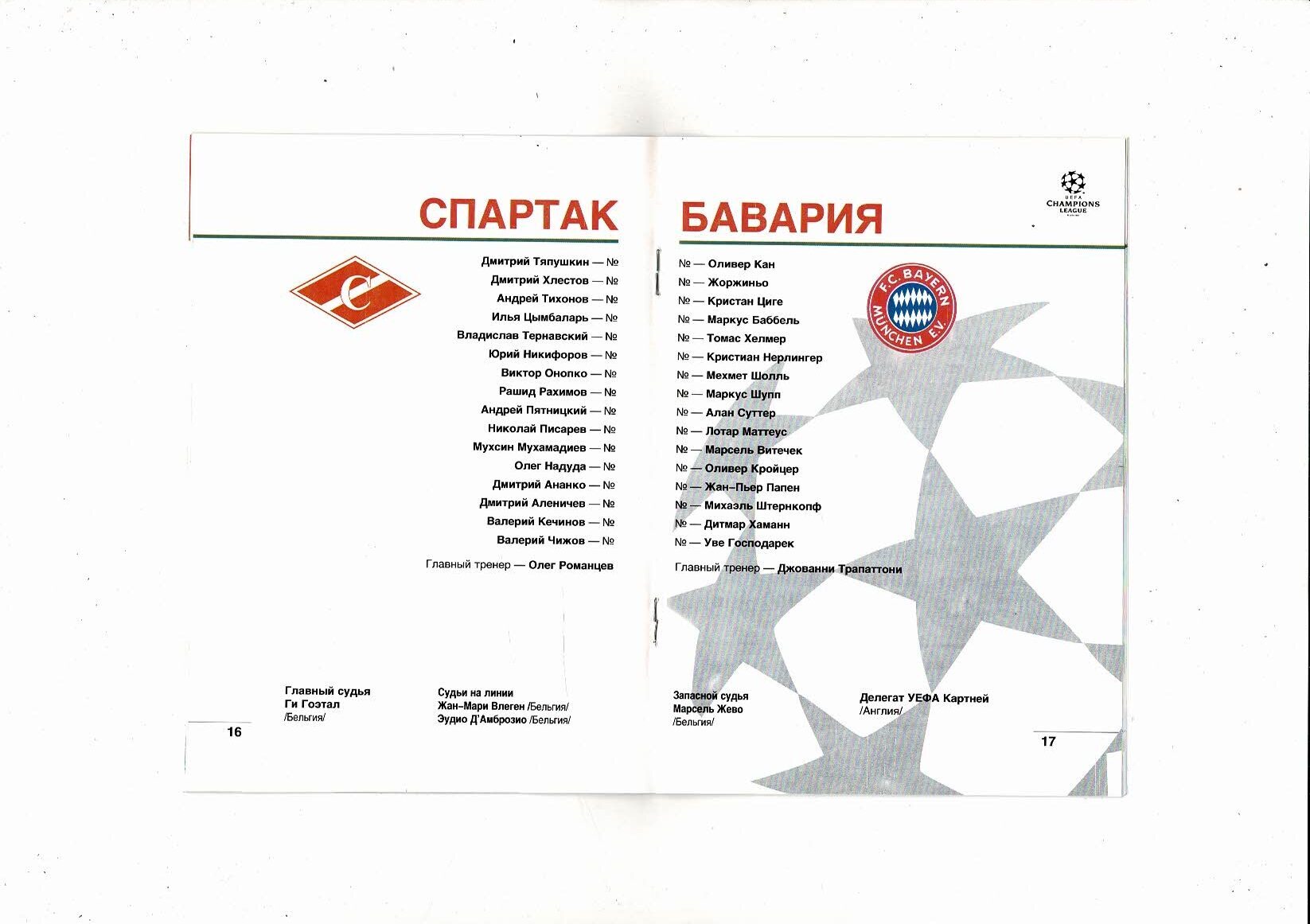 Spartak Moscow v FC Bayern Munich UEFA Champions League Football Programme 1994/95