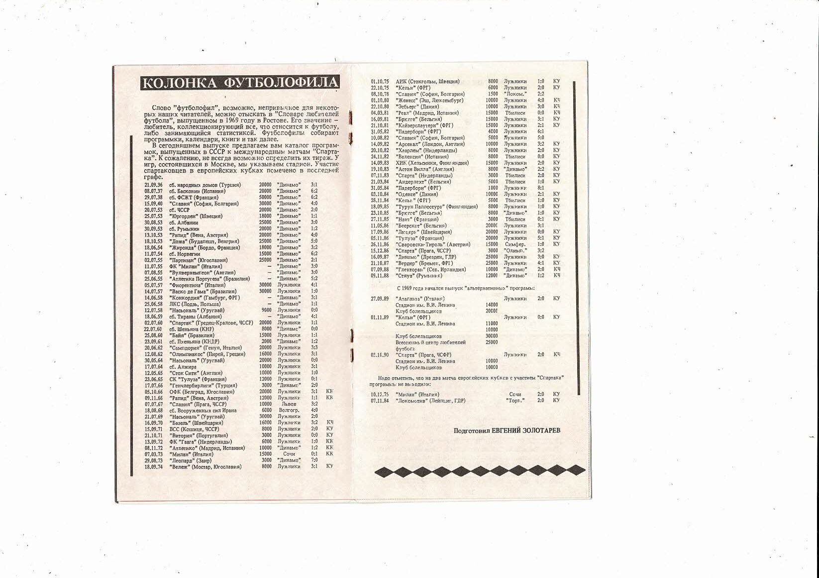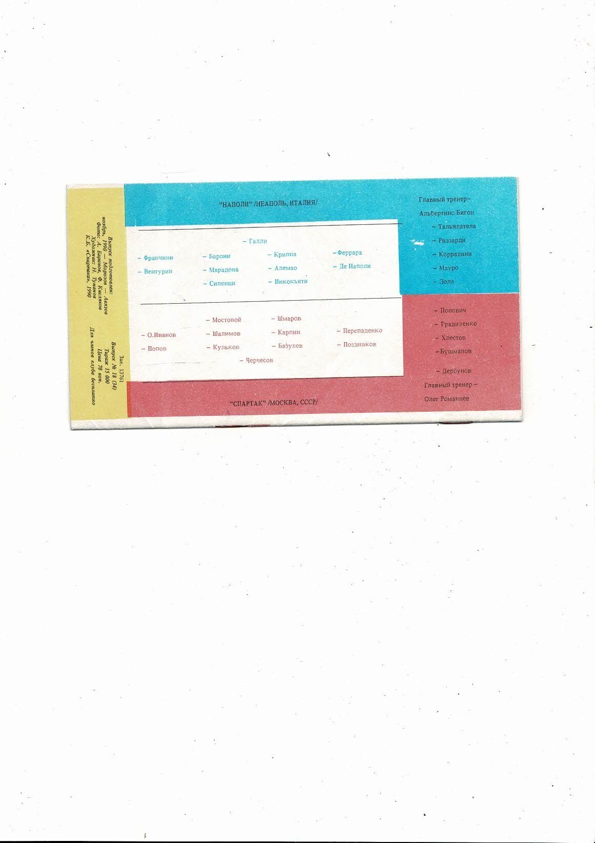 Spartak Moscow v Napoli European Cup Football Programme 1990/91