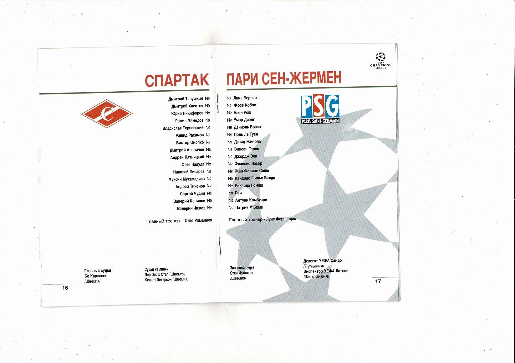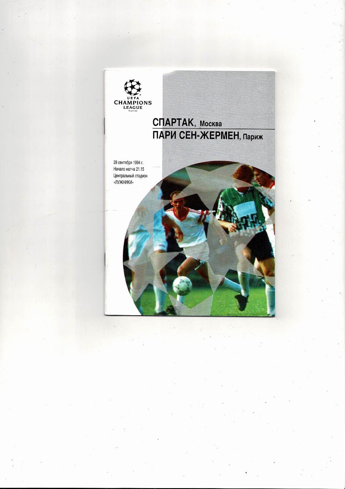 Spartak Moscow v Paris Saint-Germain UEFA Champions League Football Programme 1994/95