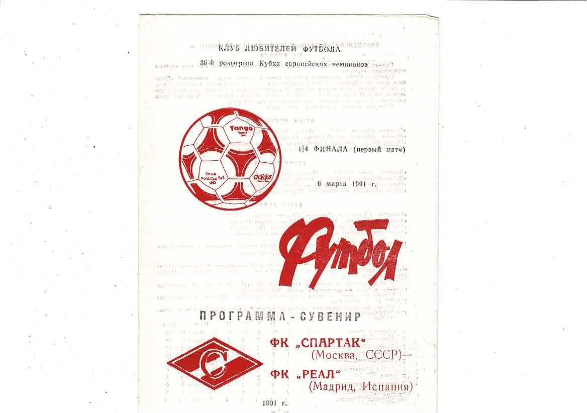 Spartak Moscow v Real Madrid European Cup Football Programme 1990/91