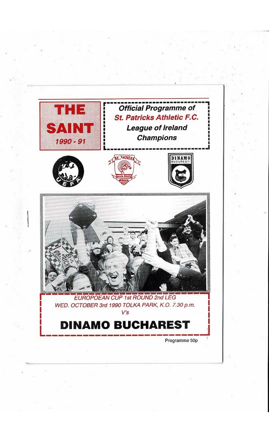 St Patricks Athletic v Dinamo Bucharest European Cup Football Programme 1990/91