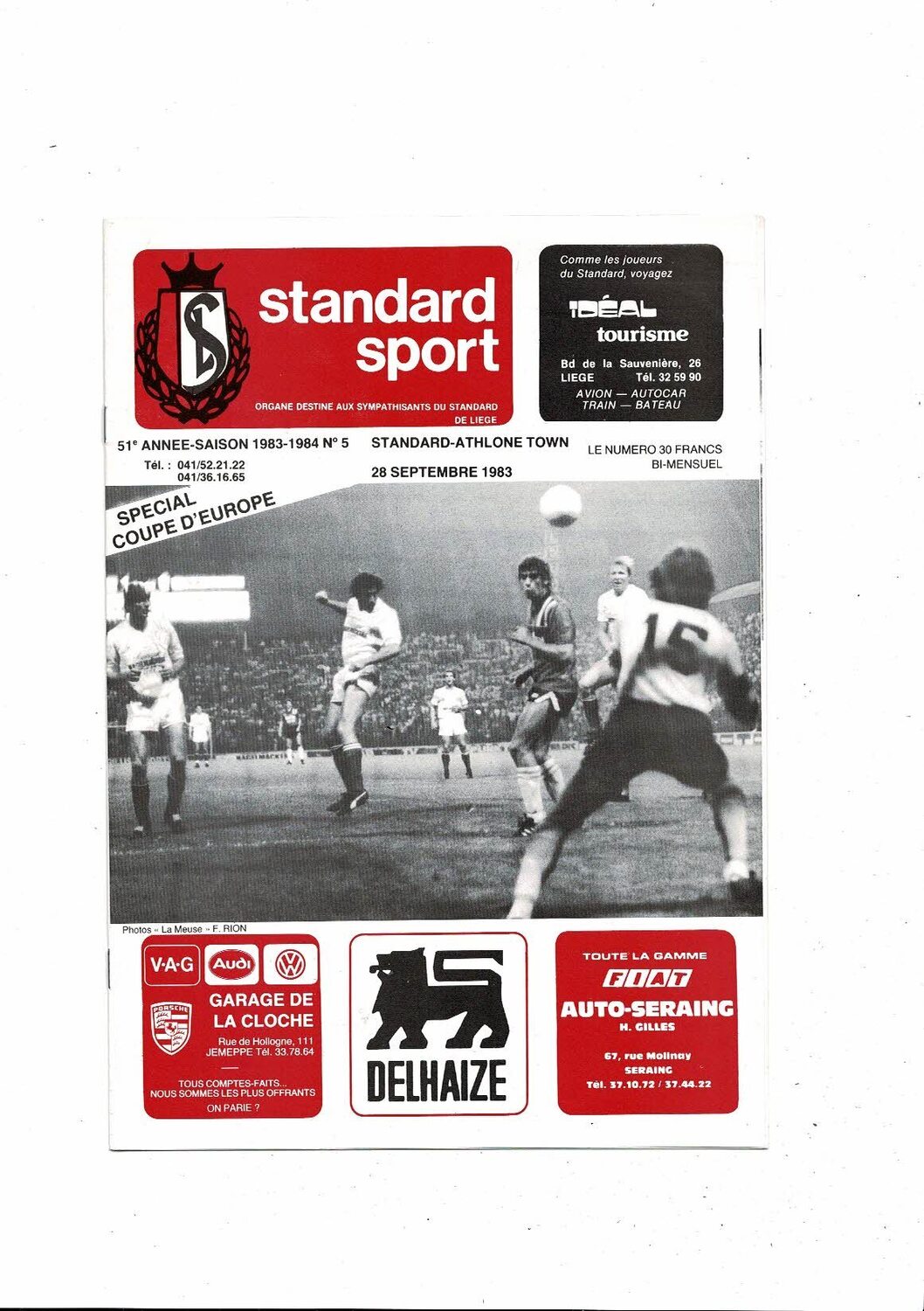 Standard Liege v Athlone Town European Cup Football Programme 1983/84